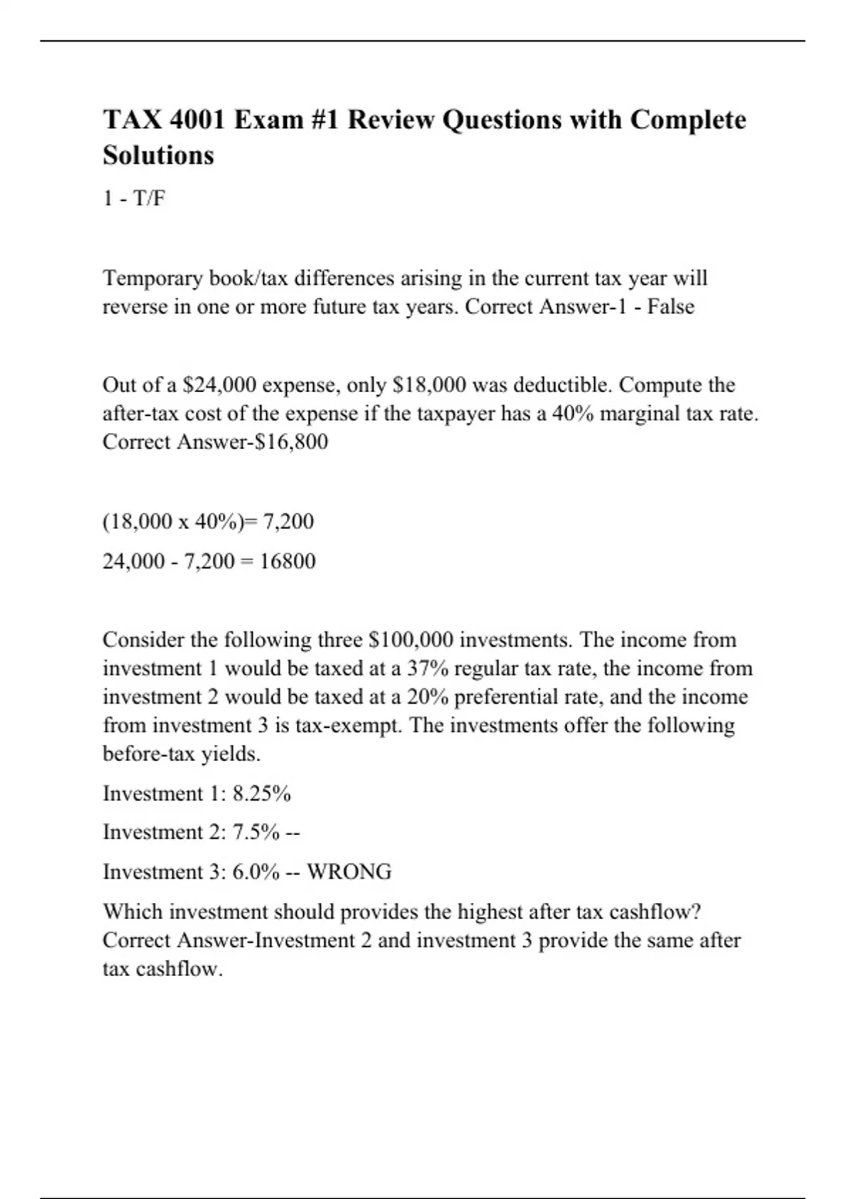 TAX 4001 Exam #1 Review Questions with Complete Solutions