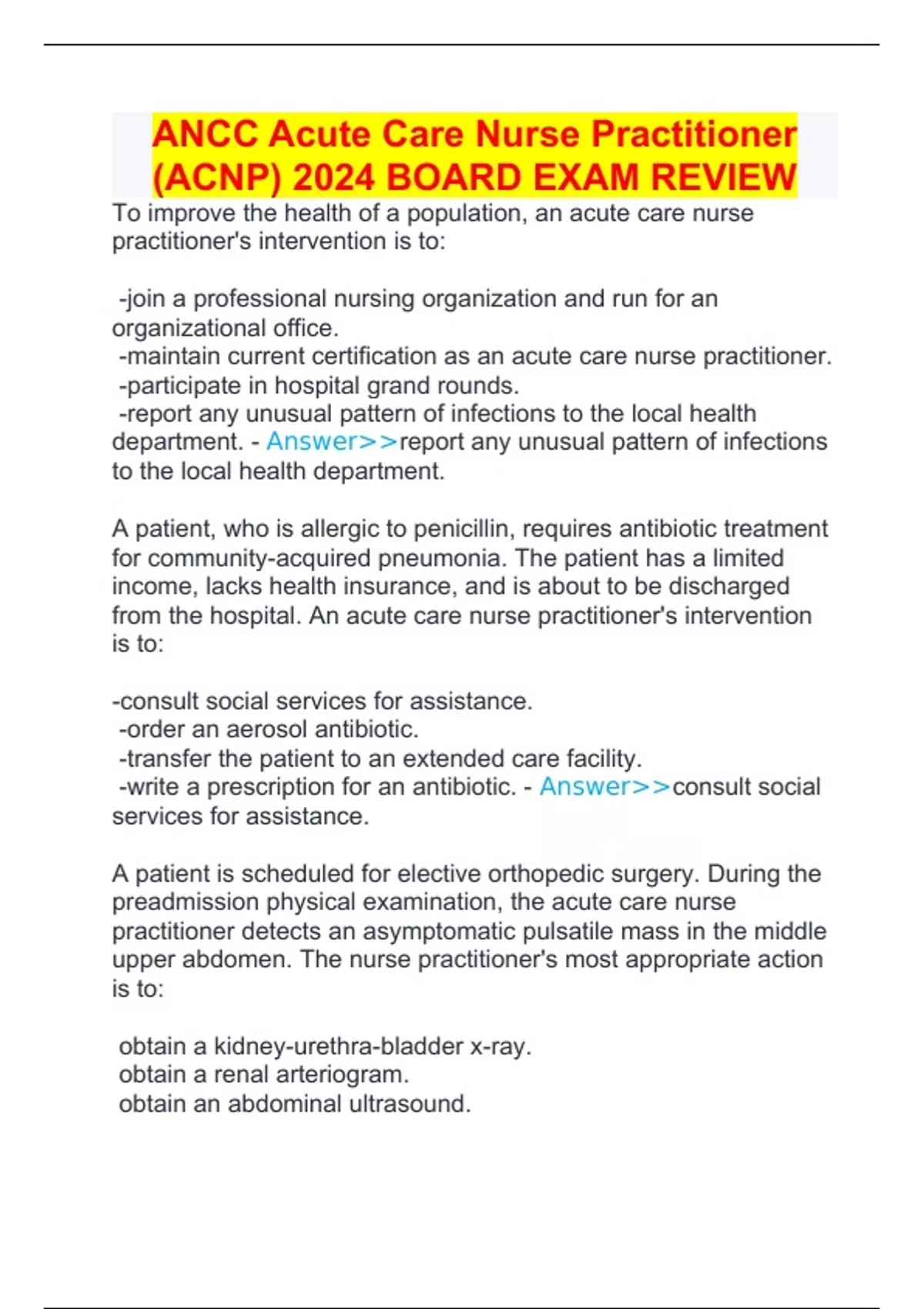 ANCC Acute Care Nurse Practitioner (ACNP) 2024 BOARD EXAM REVIEW