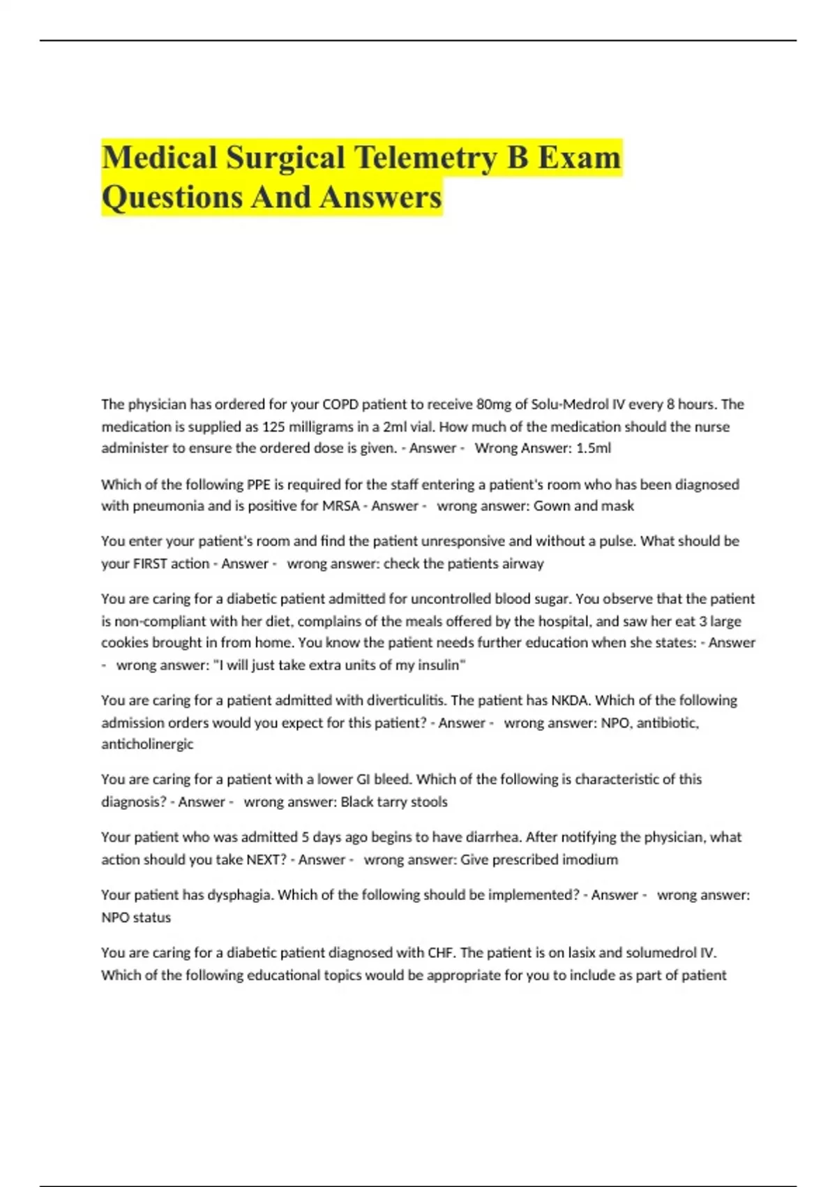Medical Surgical Telemetry B Exam Questions And Answers.