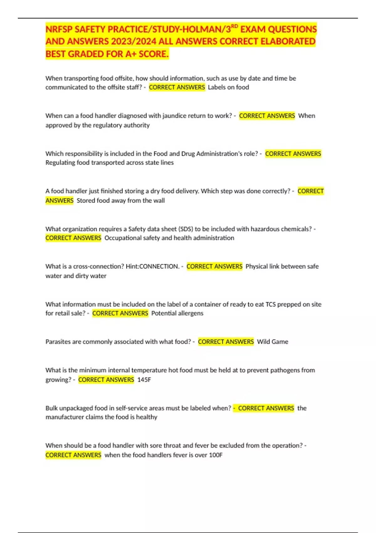 NRFSP SAFETY PRACTICE/STUDY-HOLMAN/3RD EXAM QUESTIONS AND ANSWERS 2023/2024 ALL ANSWERS CORRECT ELABORATED BEST GRADED FOR A+ SCORE.