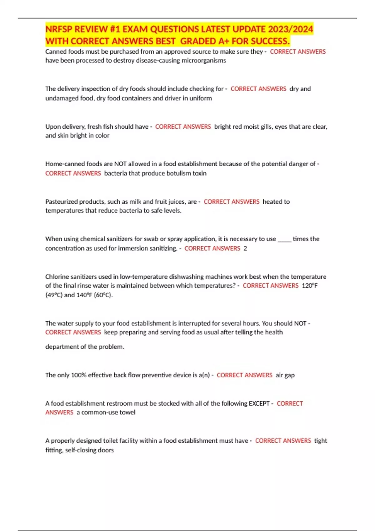 NRFSP REVIEW #1 EXAM QUESTIONS LATEST UPDATE 2023/2024 WITH CORRECT ANSWERS BEST GRADED A+ FOR SUCCESS.