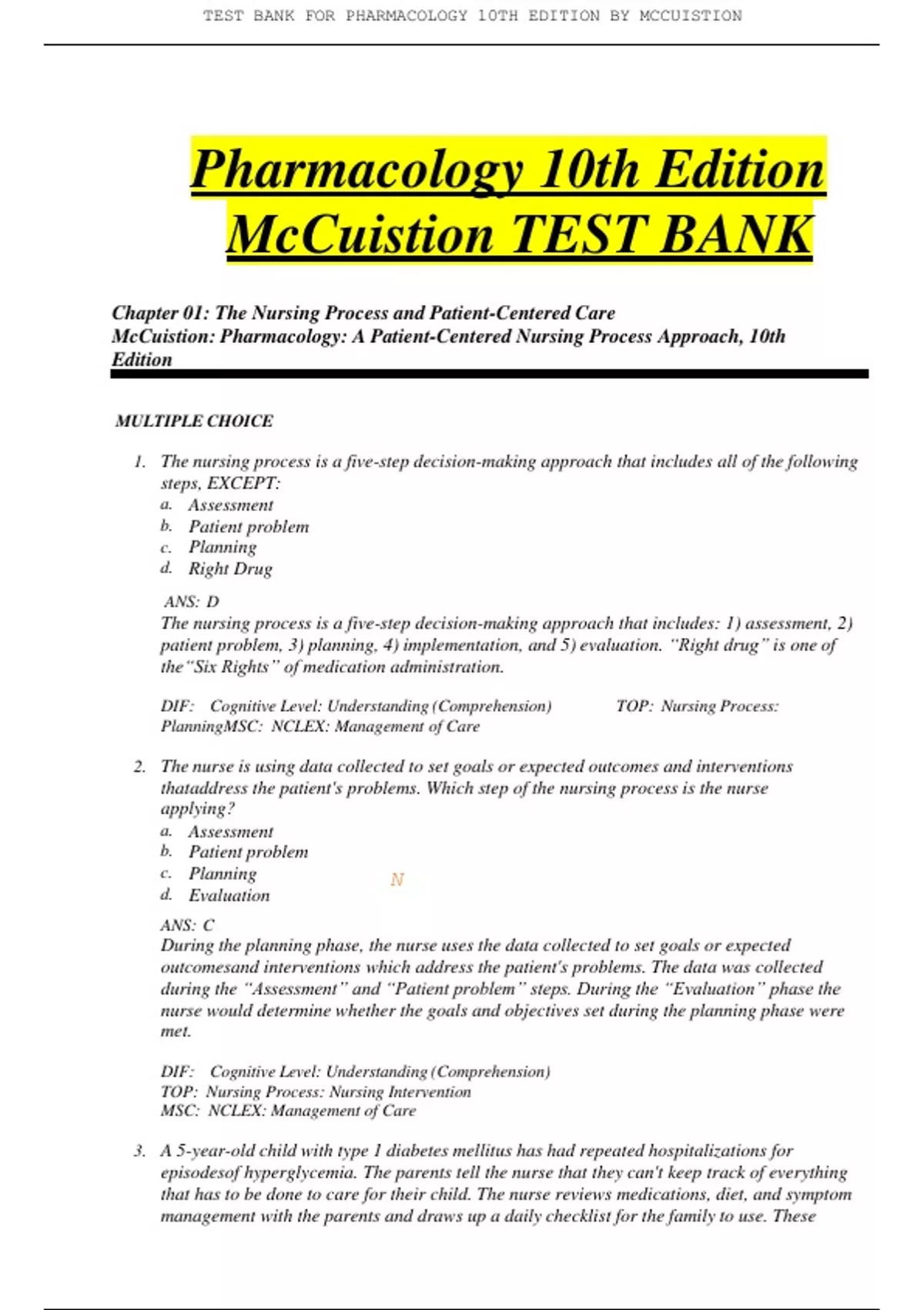 , TEST BANK FOR PHARMACOLOGY 10TH EDITION BY MCCUISTION