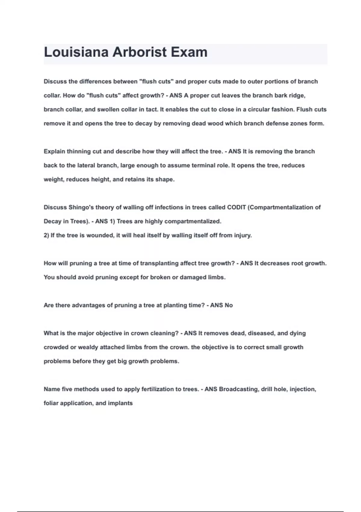 Louisiana Arborist Exam Questions & Answers 2024 ( A+ GRADED 100% VERIFIED)