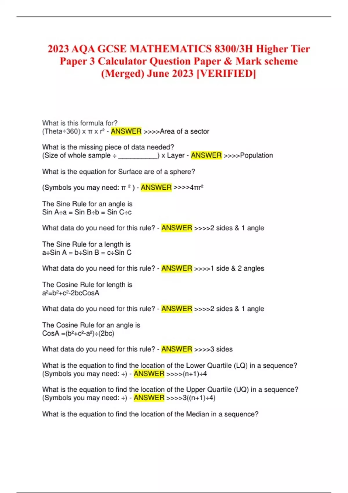 2023 AQA GCSE MATHEMATICS 8300/3H Higher Tier Paper 3 Calculator Question Paper & Mark scheme