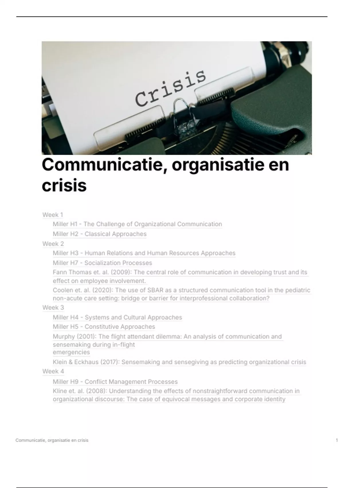 Communicatie, organisatie en crisis 1