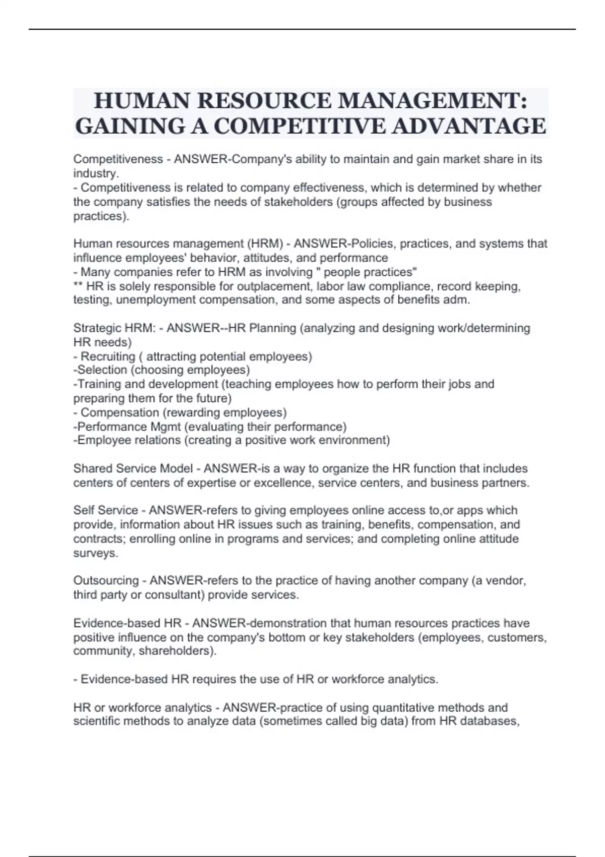 - Human Resource Management, Gaining a Competitive A