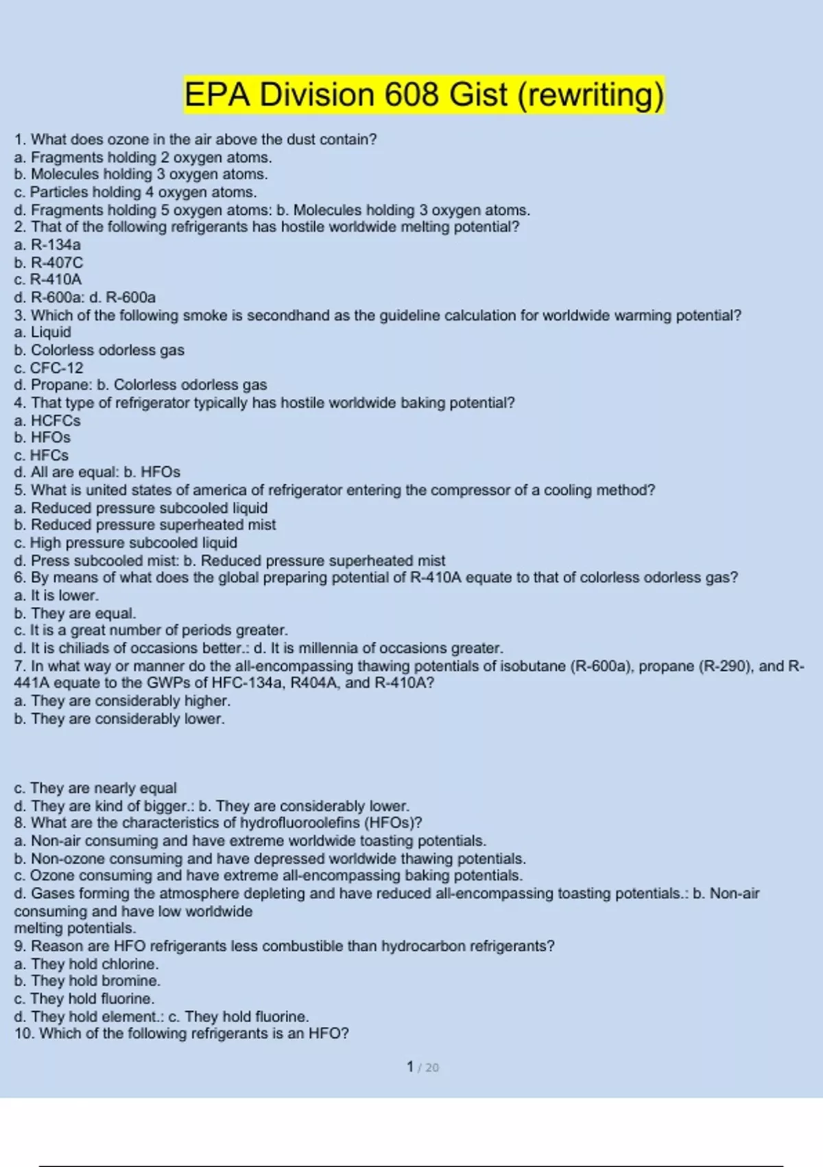 EPA SECTION 608 CORE Questions and 100% Correct Answers 2024/2025