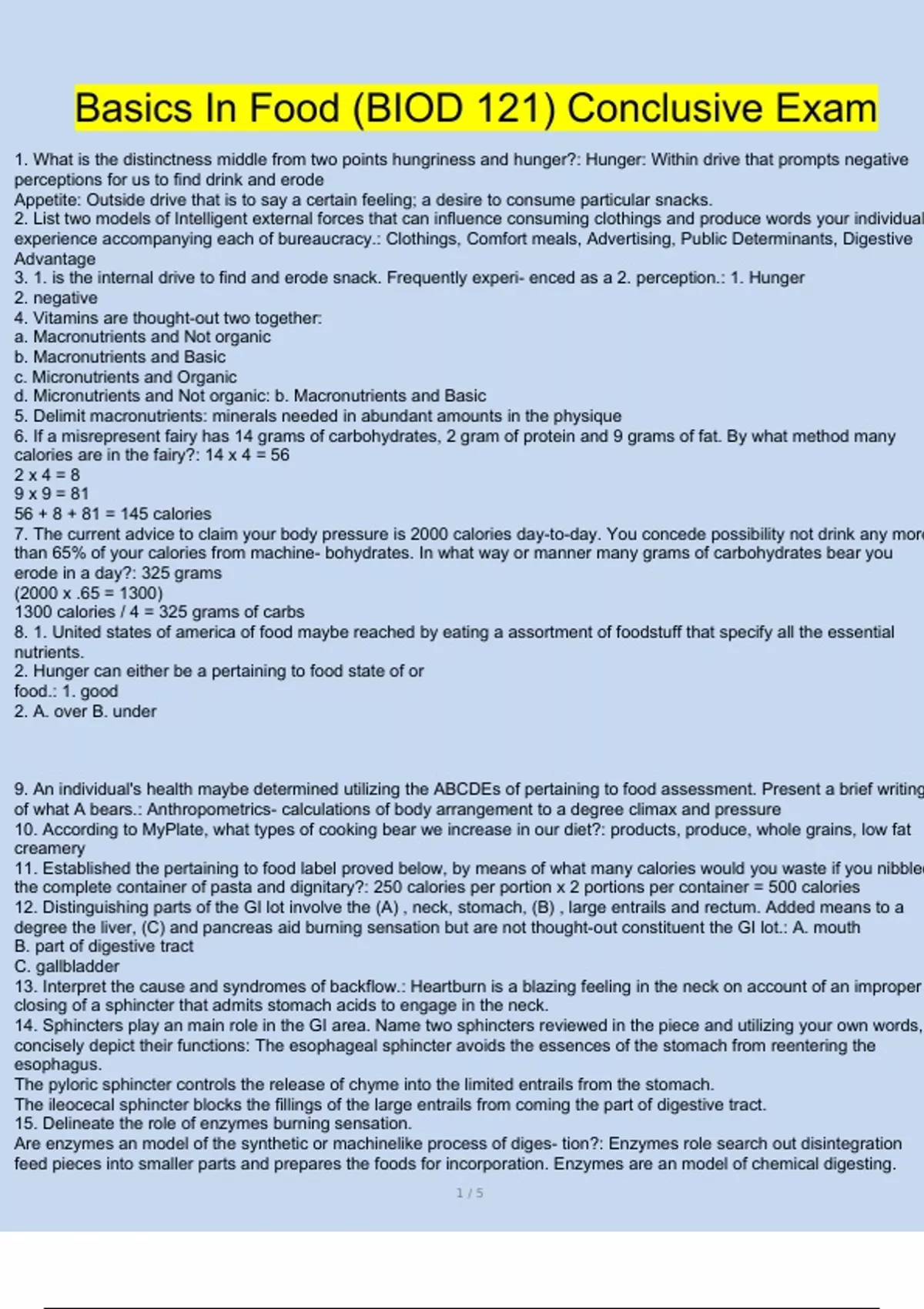 Essentials In Nutrition (BIOD 121) Final Exam questions and answers 2024/2025