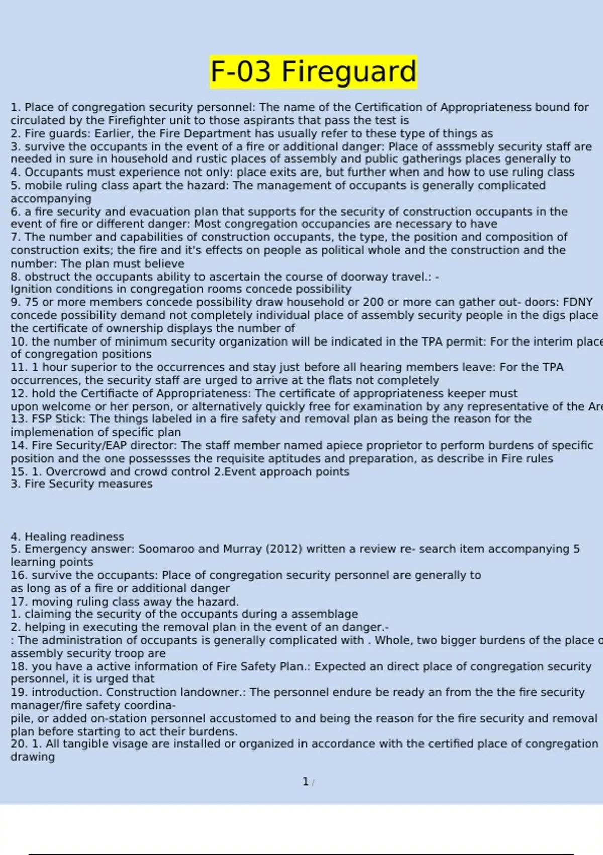F-03 Fireguard Questions and Answers with complete 2024/2025