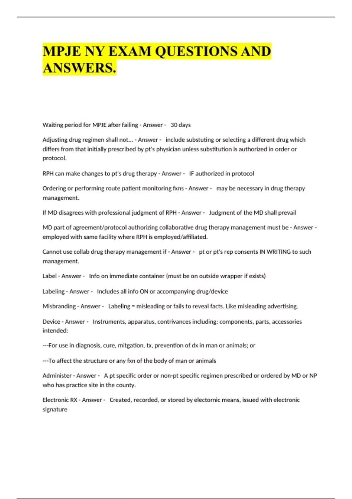 MPJE NY EXAM QUESTIONS AND ANSWERS..