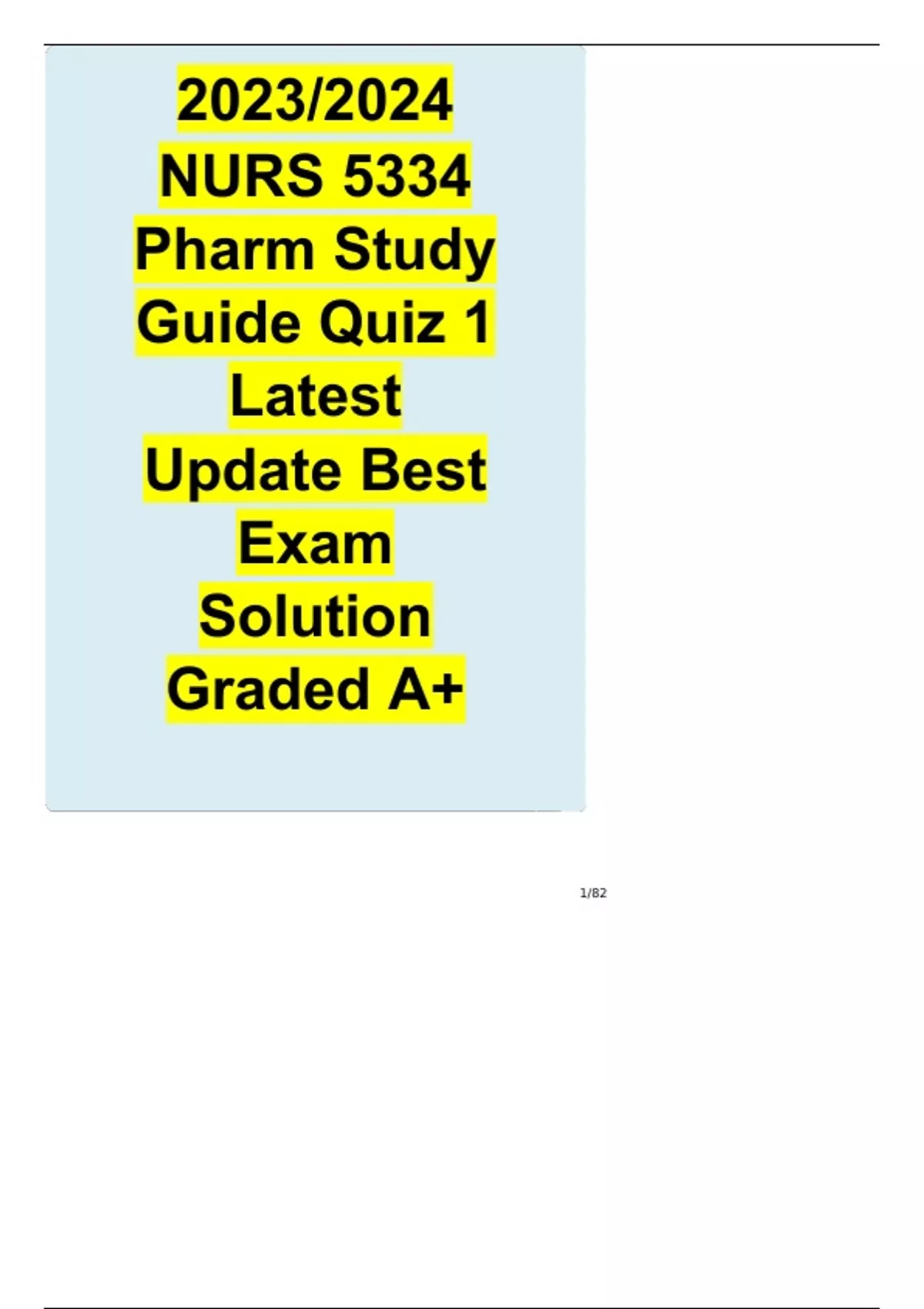 NURS 5334 Pharm Study Guide Quiz 1 Latest Update Best Exam Solution Graded A+