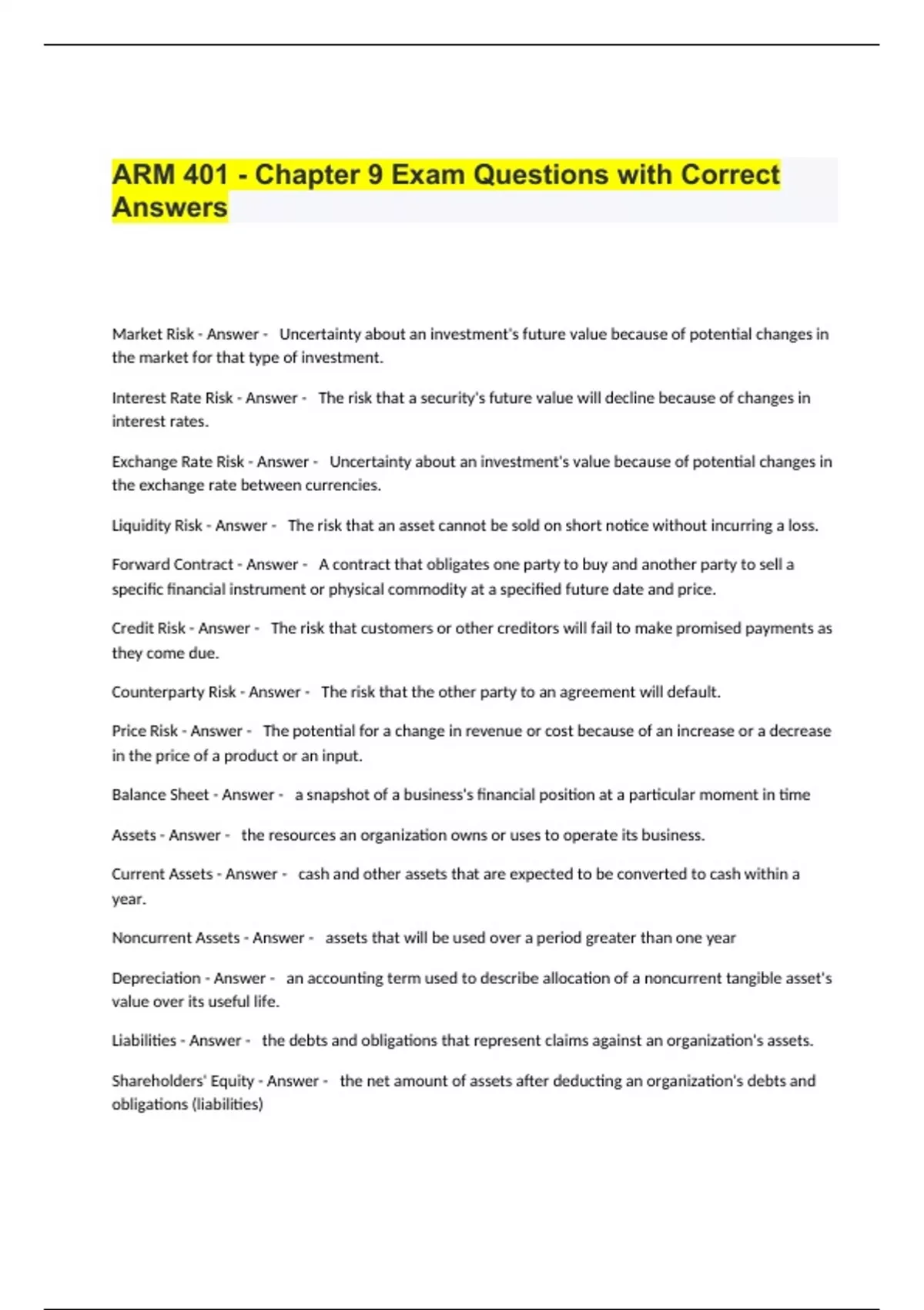 arm 401 chapter 9 exam questions with correct an