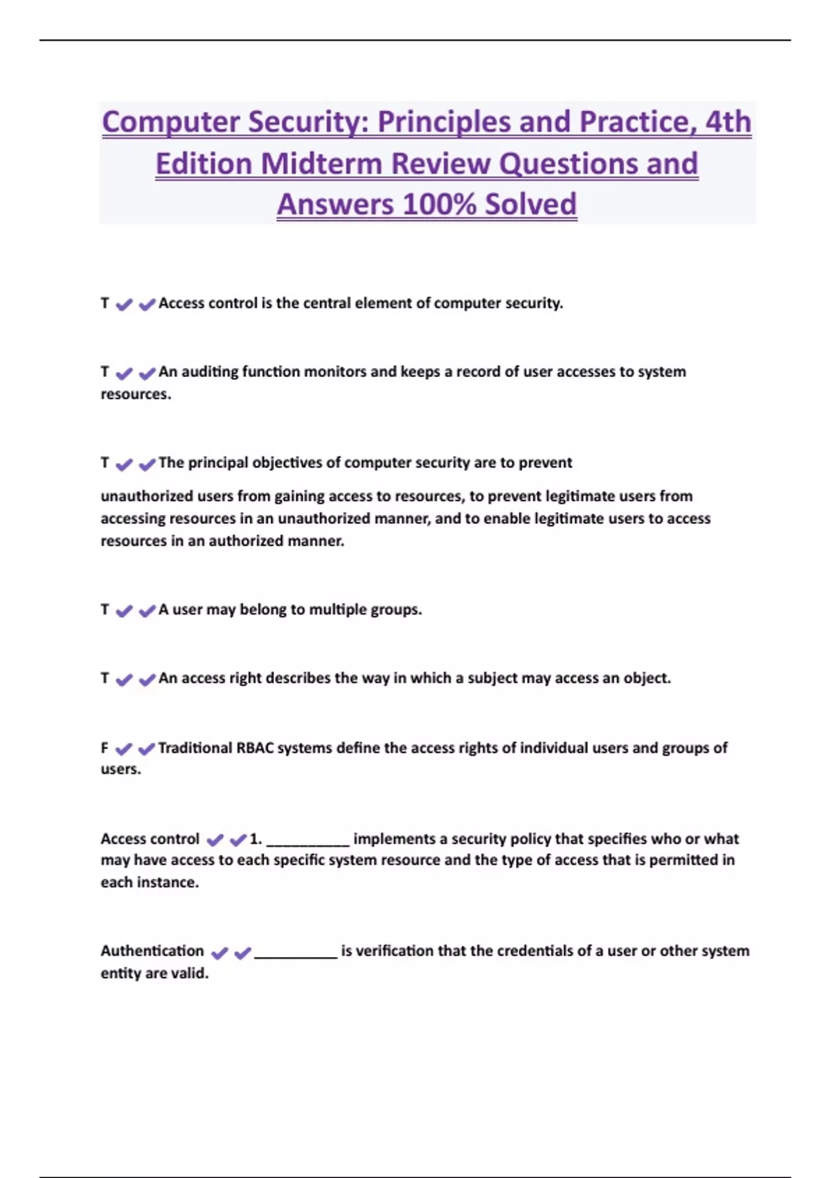Computer Security: Principles and Practice, 4th Edition Midterm Review Questions and Answers 100% Solved
