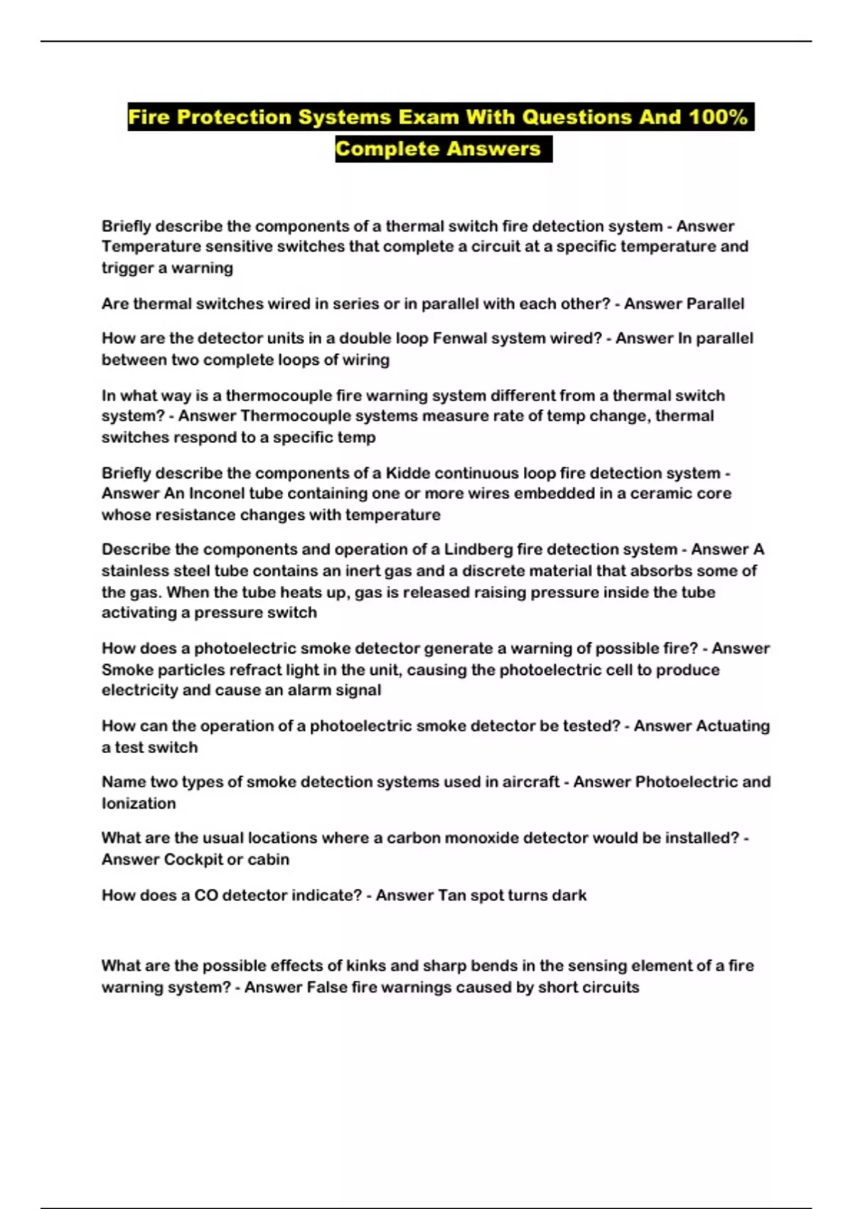 Fire Protection Systems Exam With Questions And 100% Complete Answers ...