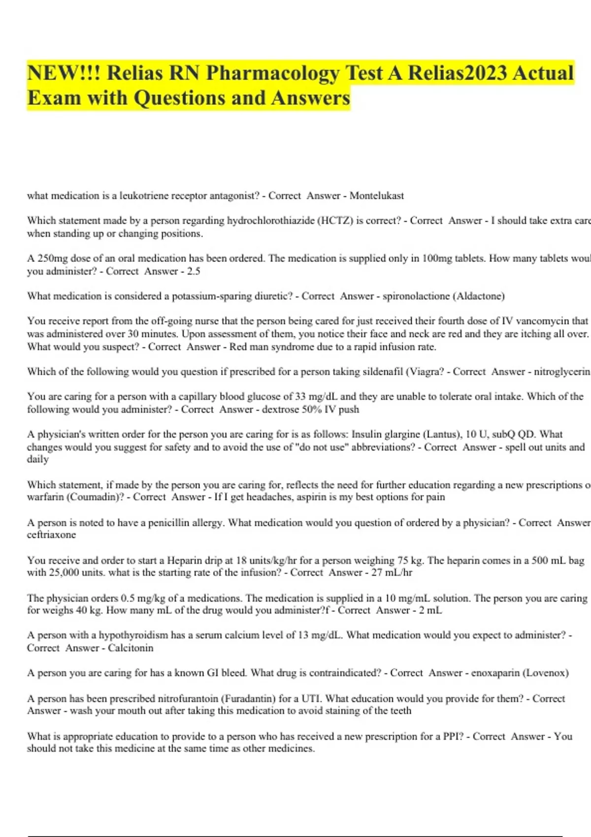 NEW!!! Relias RN Pharmacology Test A Relias2023 Actual Exam with Questions and Answers.