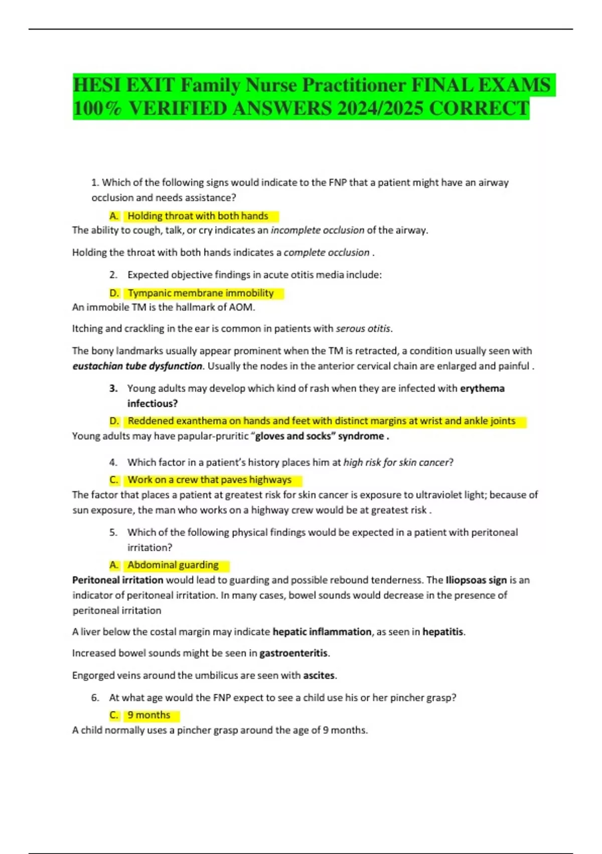 HESI EXIT Family Nurse Practitioner FINAL EXAMS 100% VERIFIED ANSWERS 2024/2025 CORRECT