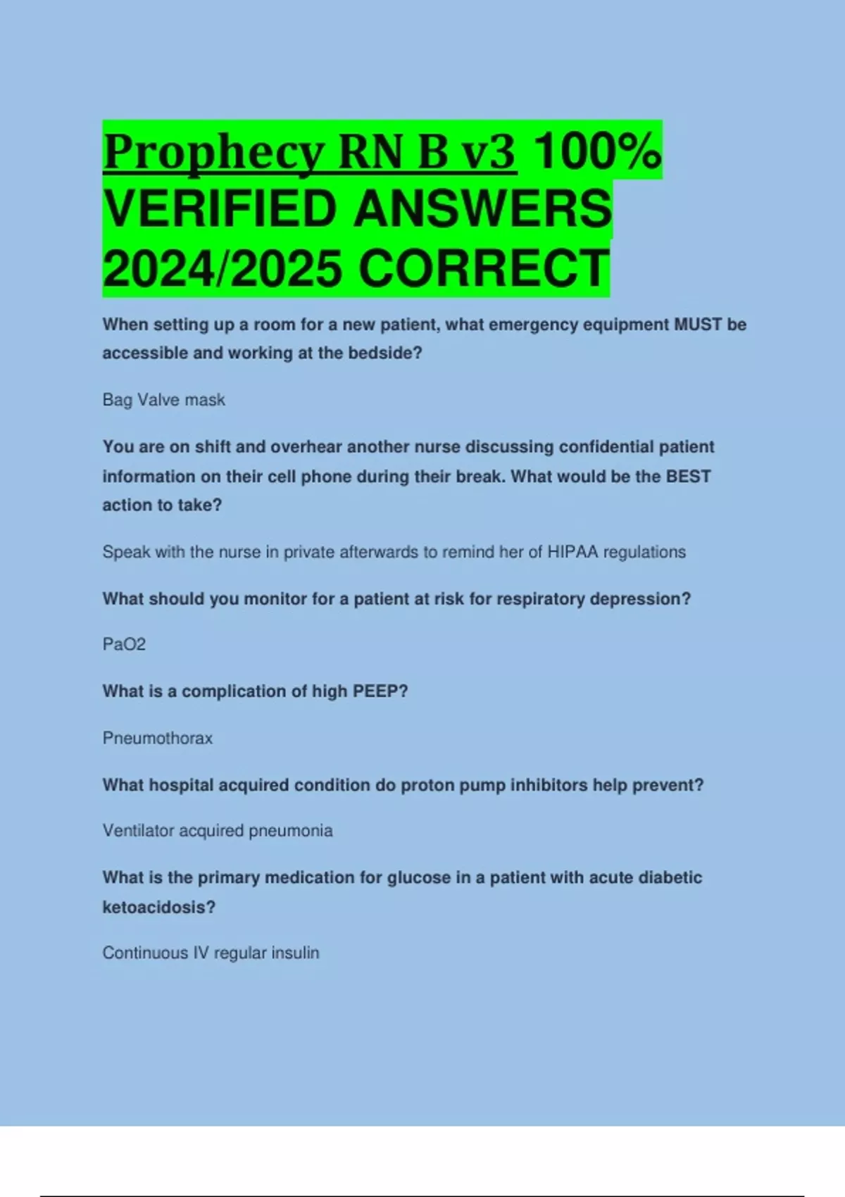 Prophecy RN B v3 100% VERIFIED ANSWERS 2024/2025 CORRECT