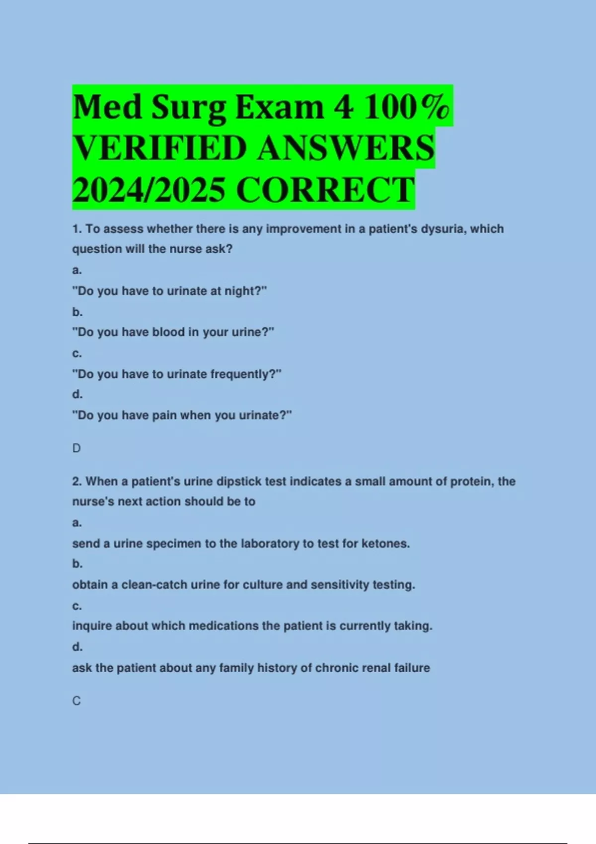 Med Surg Exam 4 100% VERIFIED ANSWERS 2024/2025 CORRECT