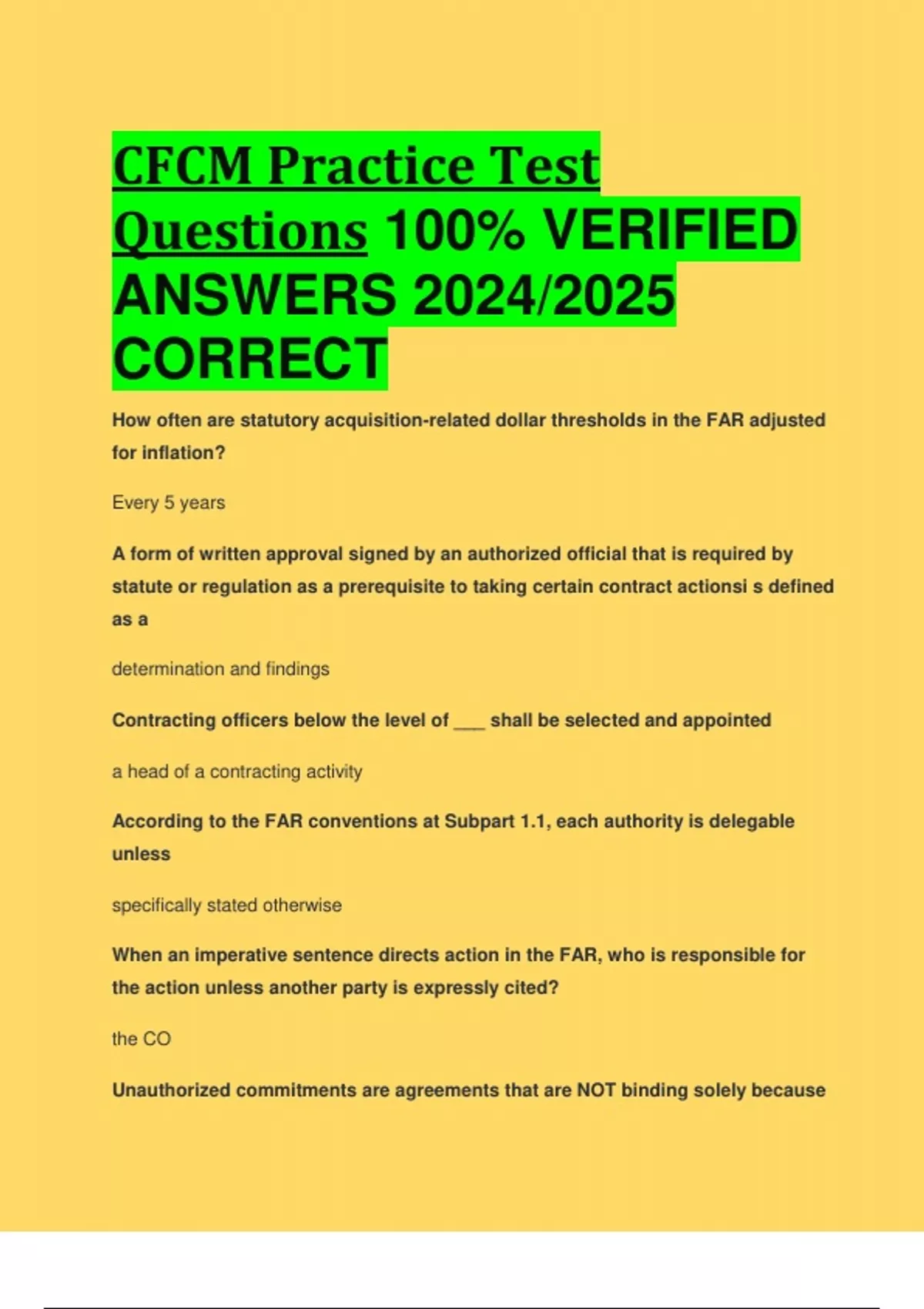 CFCM Practice Test Questions 100% VERIFIED ANSWERS 2024/2025 CORRECT