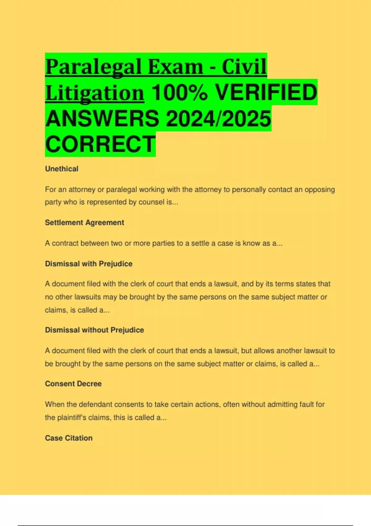 paralegal exam civil litigation 100 verified a