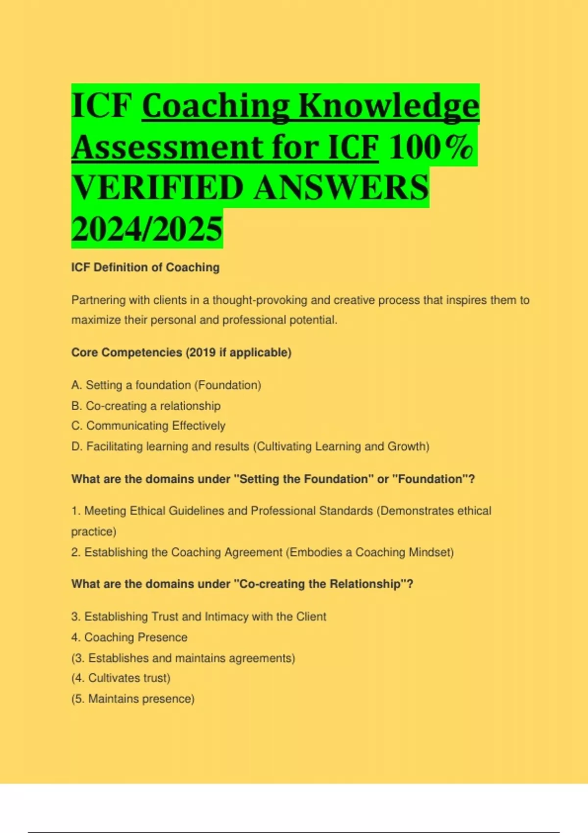 ICF Coaching Knowledge Assessment for ICF 100% VERIFIED ANSWERS 2024/2025