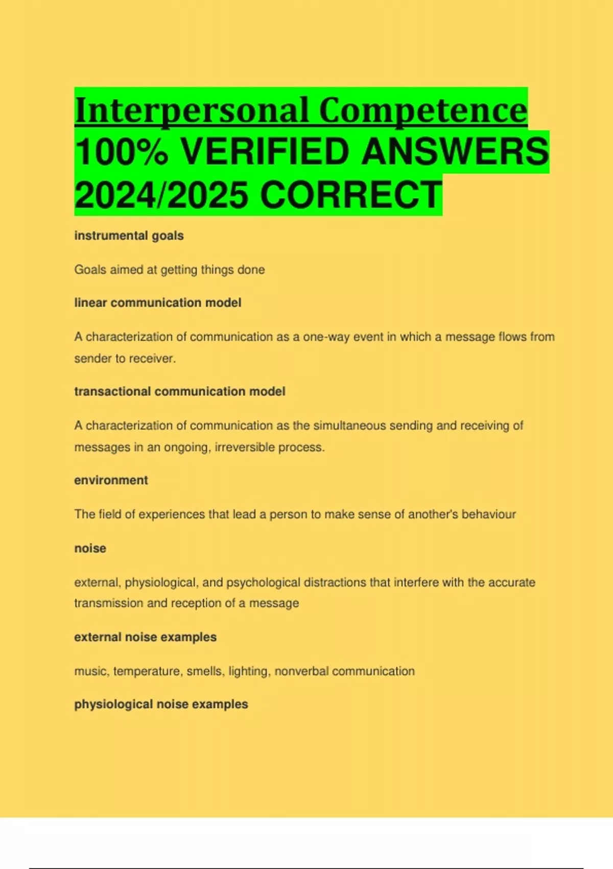 Interpersonal Competence 100% VERIFIED ANSWERS 2024/2025 CORRECT