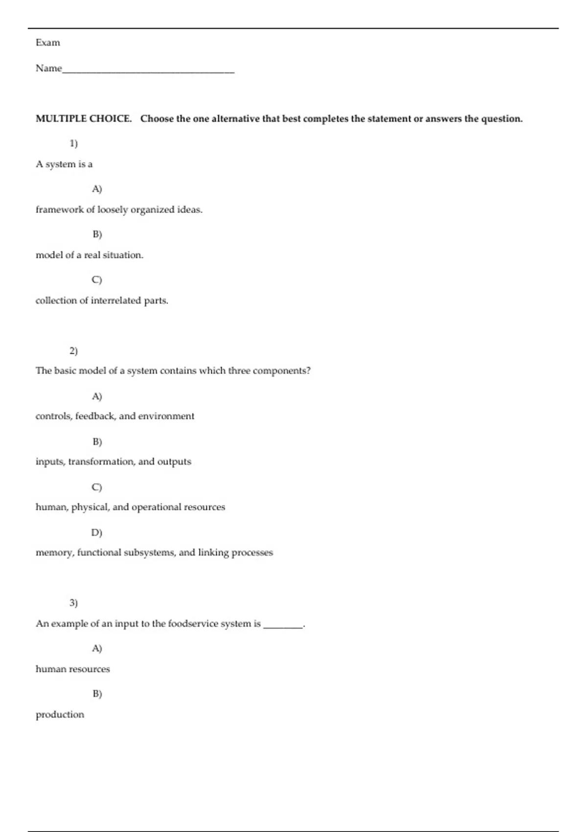 The test bank accompanying Foodservice Organizations A Managerial and Systems Approach, Gregoire,9e is your short-cut for exam success. It includes large pool of practice questions created specifically for the textbook used in your class. All answers included. 100% Authentic. Mastering those questions is a sure way to excel and pass the class.