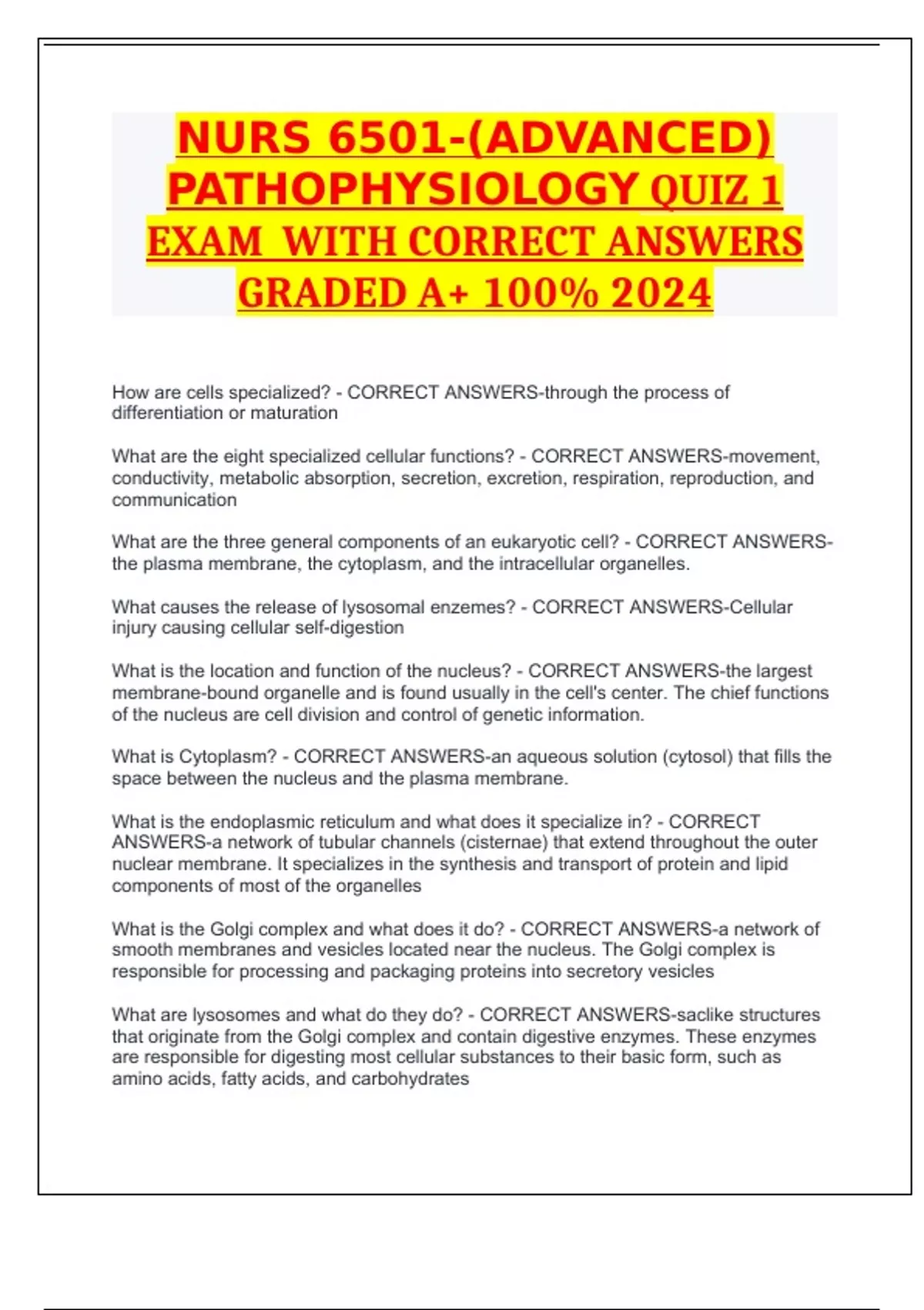 NURS 6501-(ADVANCED) PATHOPHYSIOLOGY QUIZ 1 EXAM WITH CORRECT ANSWERS GRADED A+ 100% 2024