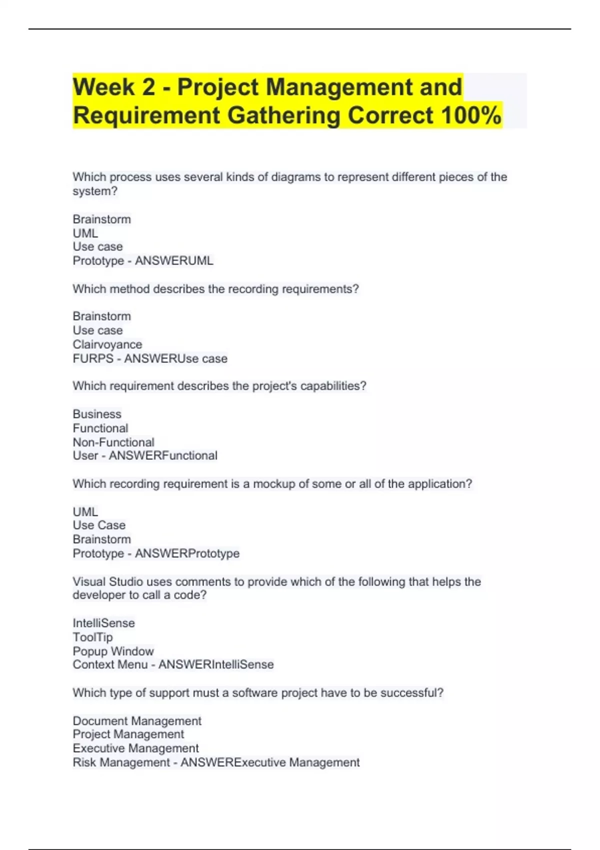Week 2 - Project Management and Requirement Gathering Correct 100%