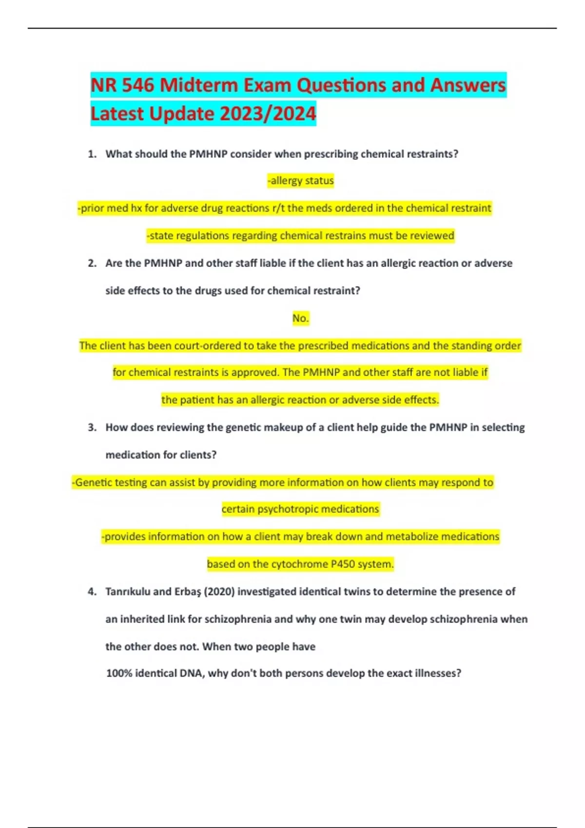 NR 546 Midterm Exam Questions and Answers Latest Update