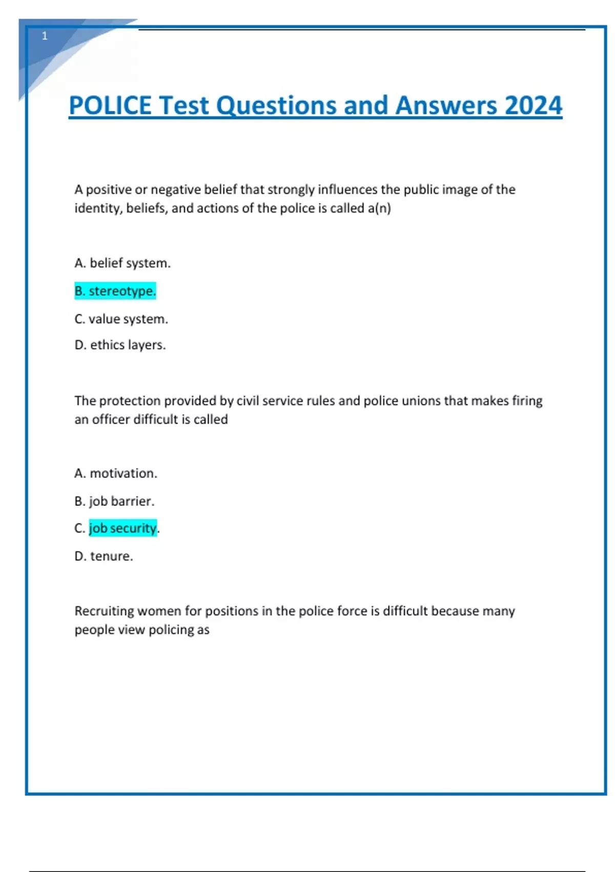 POLICE Test Questions and Answers 2024