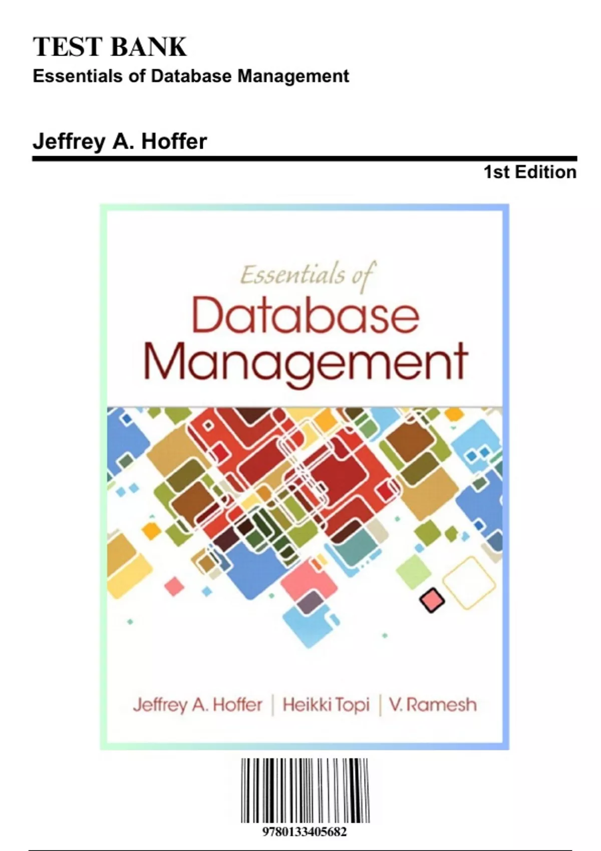 Test Bank for Essentials of Database Management, 1st Edition by Jeffrey A. Hoffer, 9780133405682, Covering Chapters 1-9 | Includes Rationales