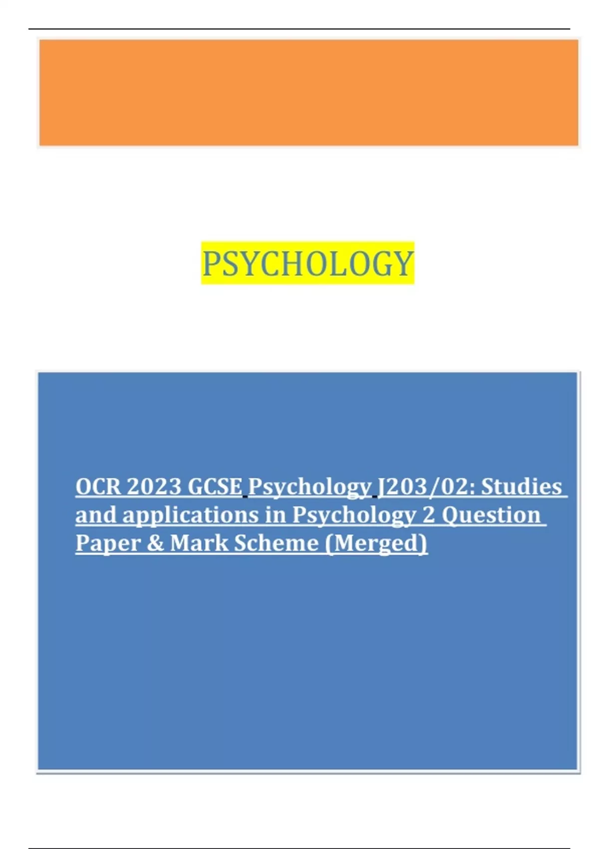 OCR 2023 GCSE Psychology J203/02: Studies and applications in Psychology 2 Question Paper & Mark Scheme (Merged)