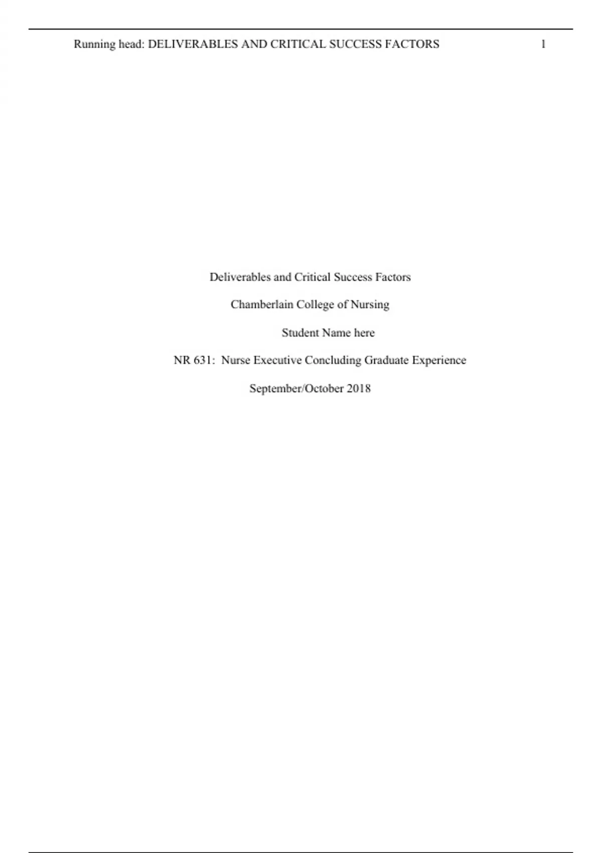 nr 631 week 5 deliverables and critical success