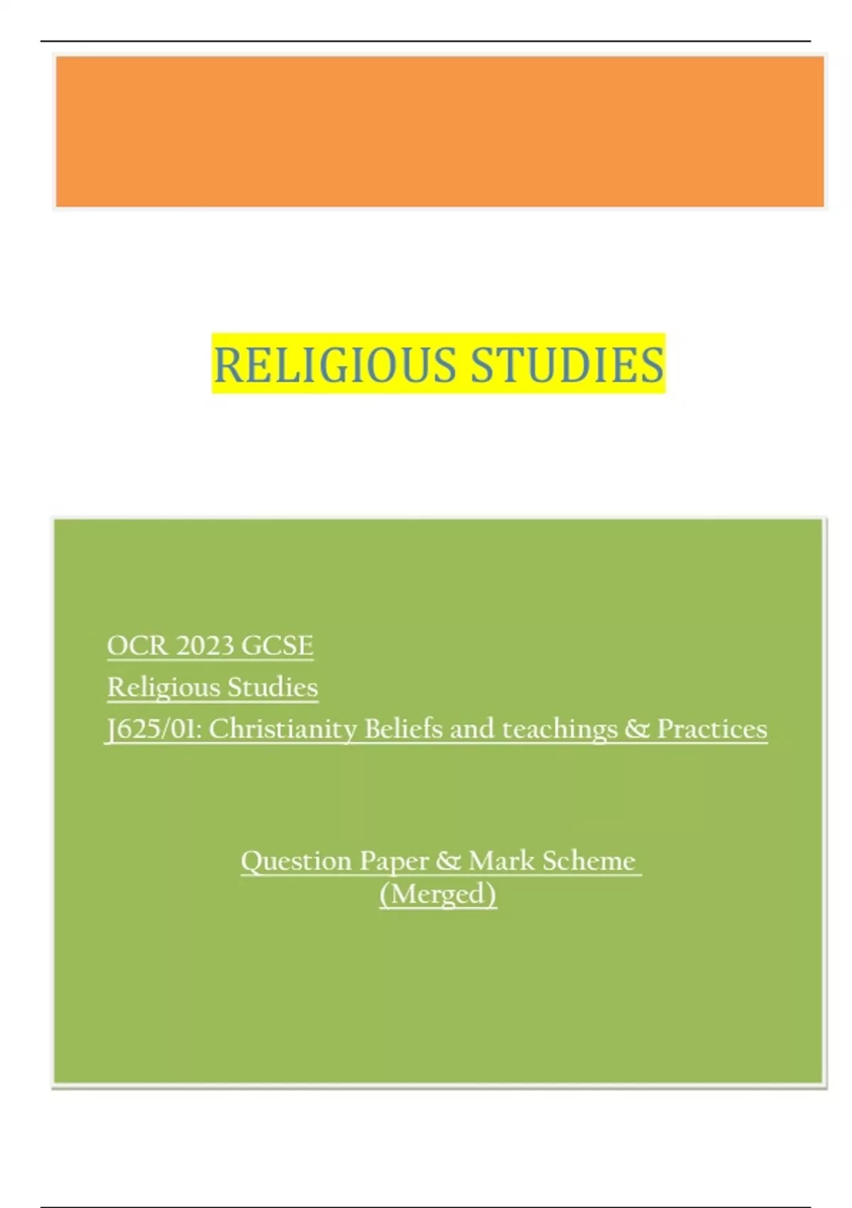 OCR 2023 GCSE Religious Studies J625/01: Christianity Beliefs and teachings & Practices Question Paper & Mark Scheme (Merged)