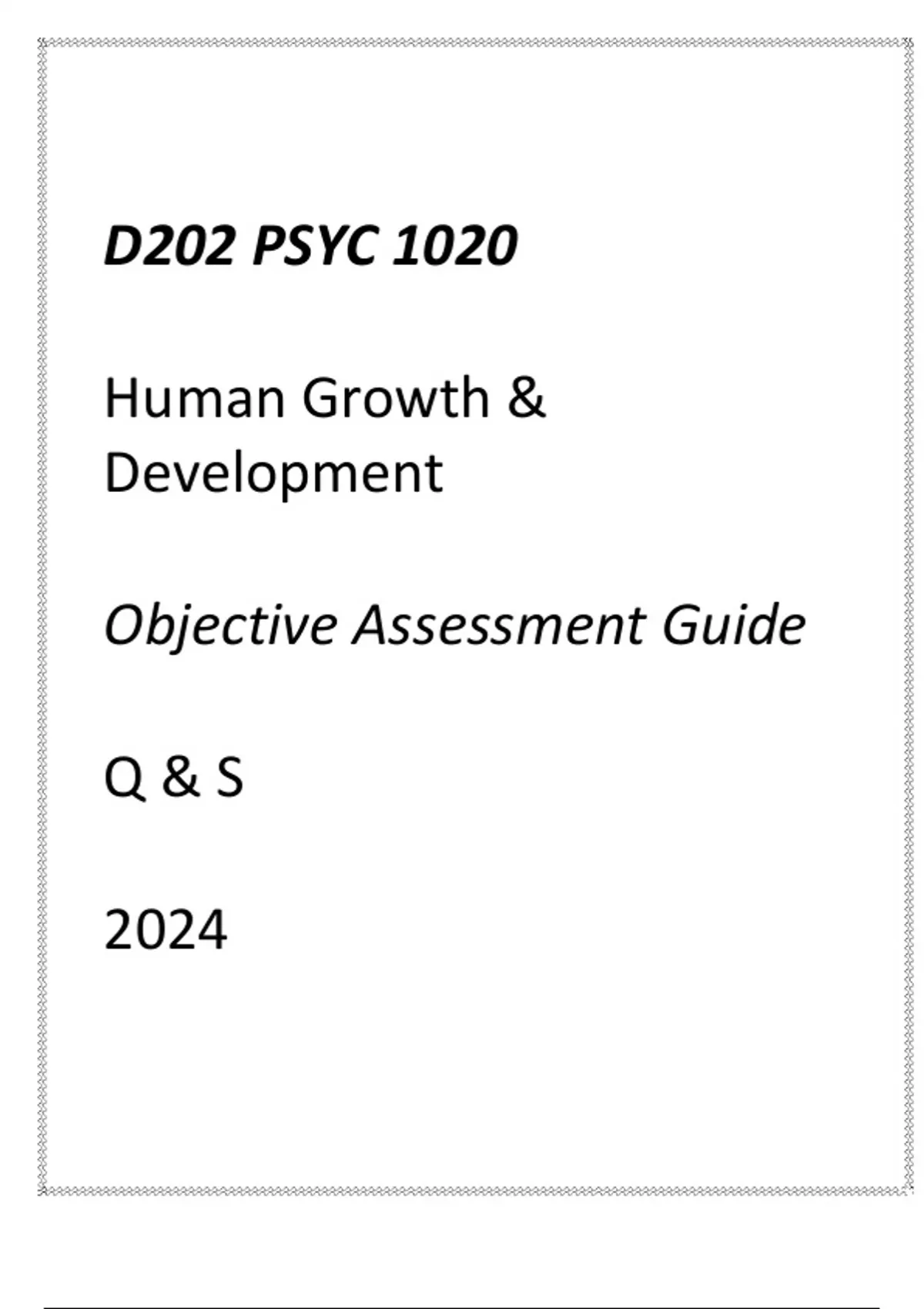 (WGU D202) PSYC 1020 Human Growth &(WGU D202) PSYC 1020 Human Growth & Development Objective Assessment Guide Q & S Development Objective Assessment Guide Q & S