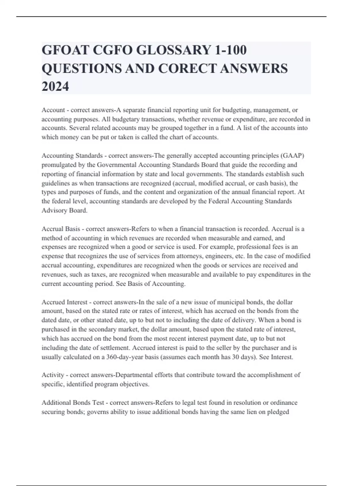 GFOAT CGFO GLOSSARY 1-100 QUESTIONS AND CORECT ANSWERS 2024