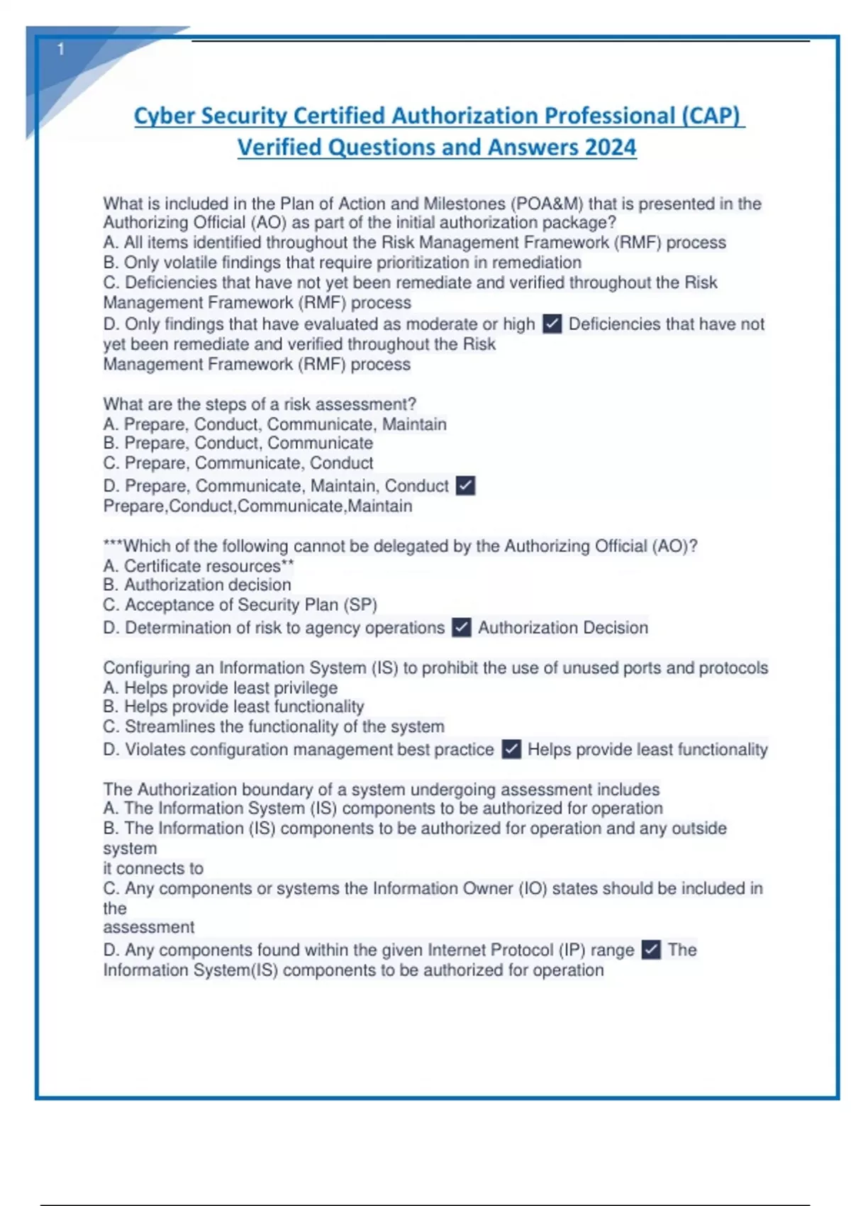 Cyber Security Certified Authorization Professional (CAP) Verified Questions and Answers 2024