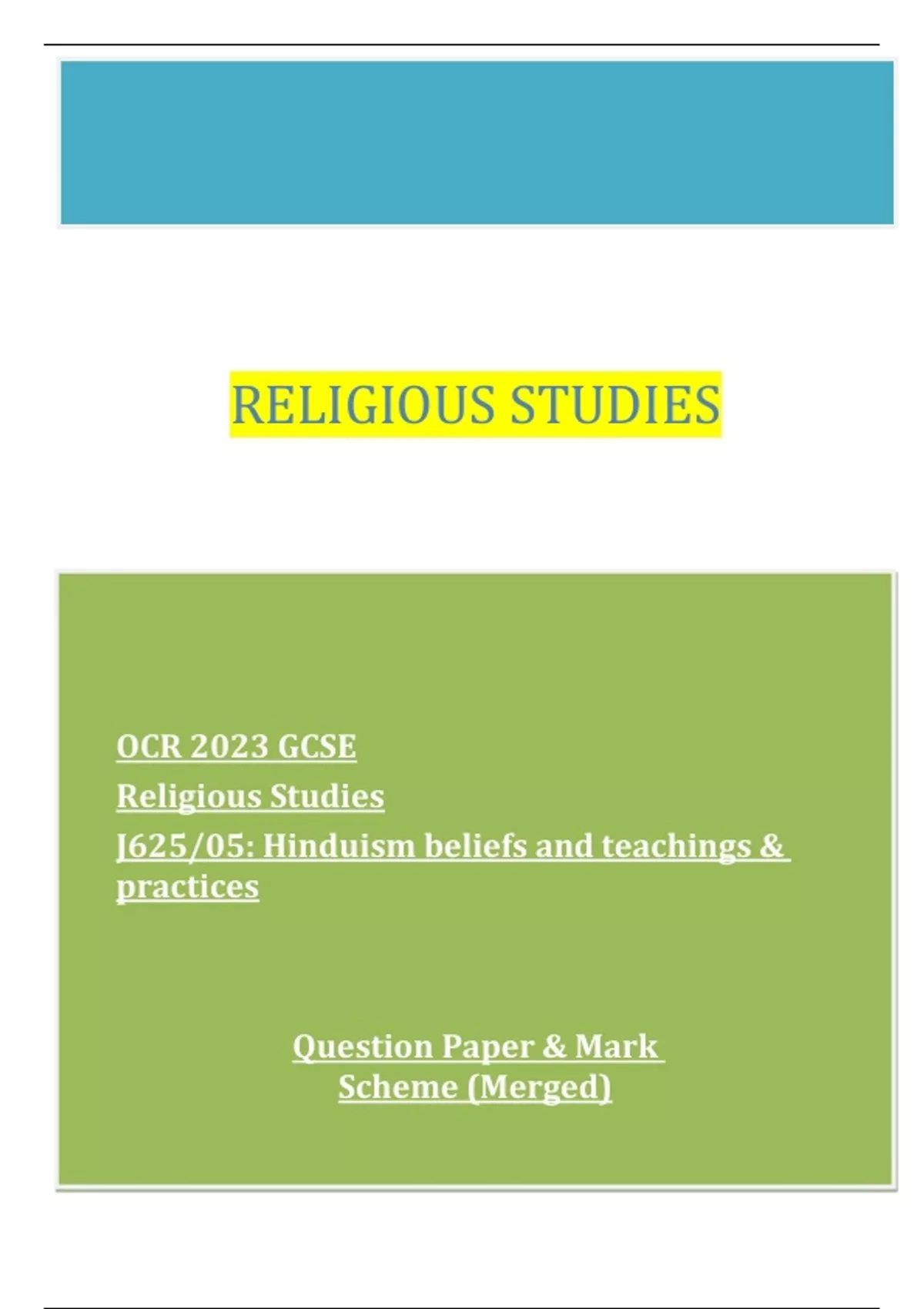 OCR 2023 GCSE Religious Studies J625/05: Hinduism beliefs and teachings & practices Question Paper & Mark Scheme (Merged)