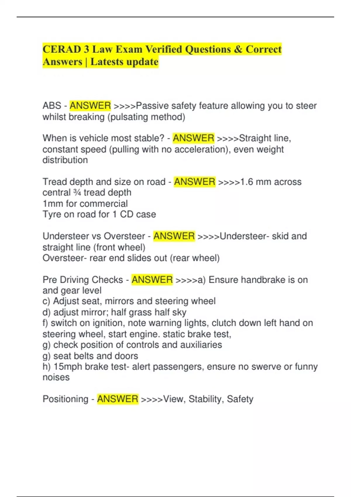 CERAD 3 Law Exam Verified Questions & Correct Answers | Latests update