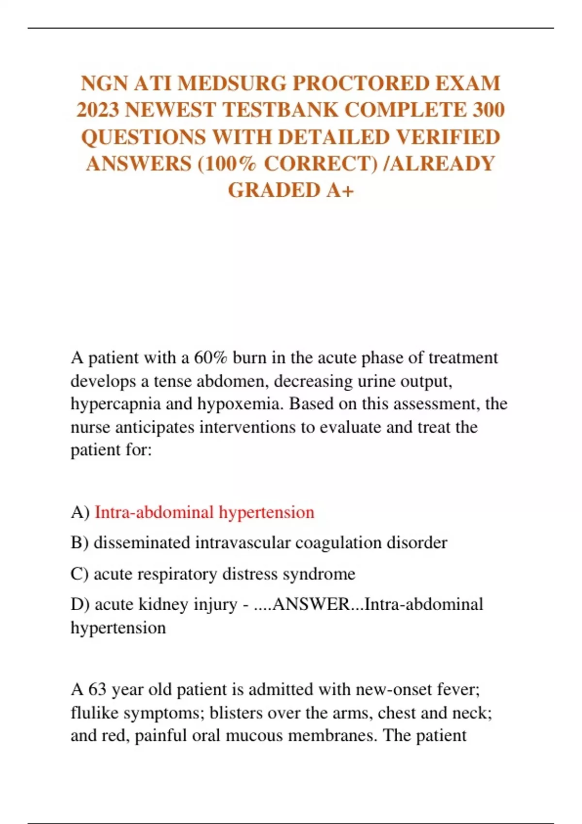 NGN ATI MEDSURG PROCTORED EXAM 2023 NEWEST TESTBANK COMPLETE 300 QUESTIONS WITH DETAILED VERIFIED ANSWERS (100% CORRECT) /ALREADY GRADED A+