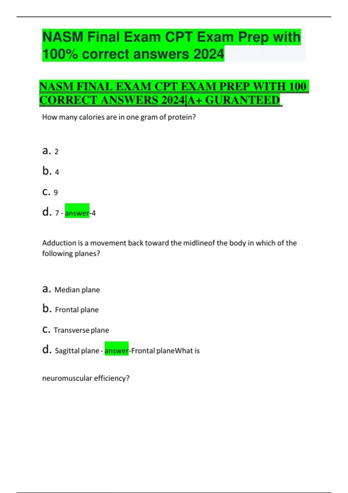 NASM FINAL EXAM CPT EXAM PREP WITH 100 CORRECT ANSWERS 2024|A+ GURANTEED