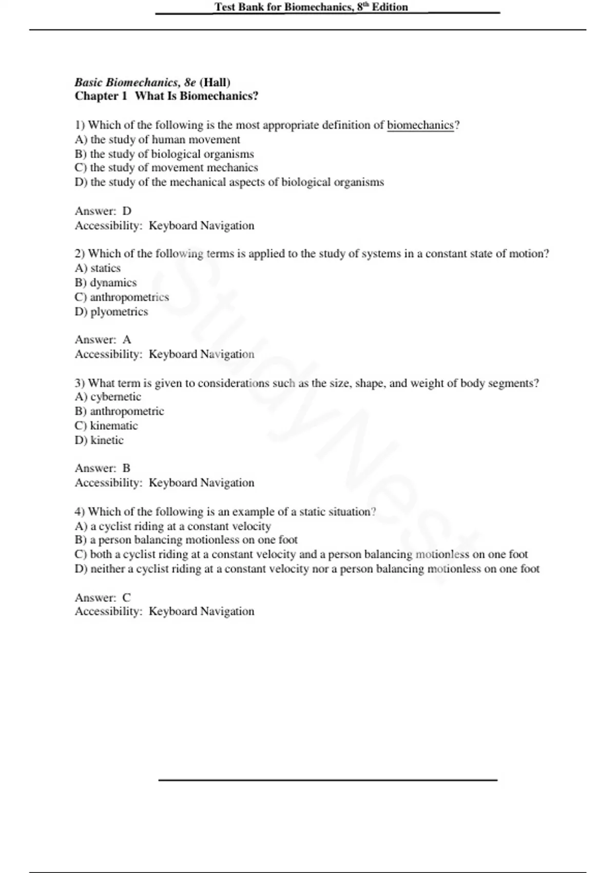 Test Bank For Basic Biomechanics 8Th Edition By Susan, Chapter 1-15 Complete Guide.