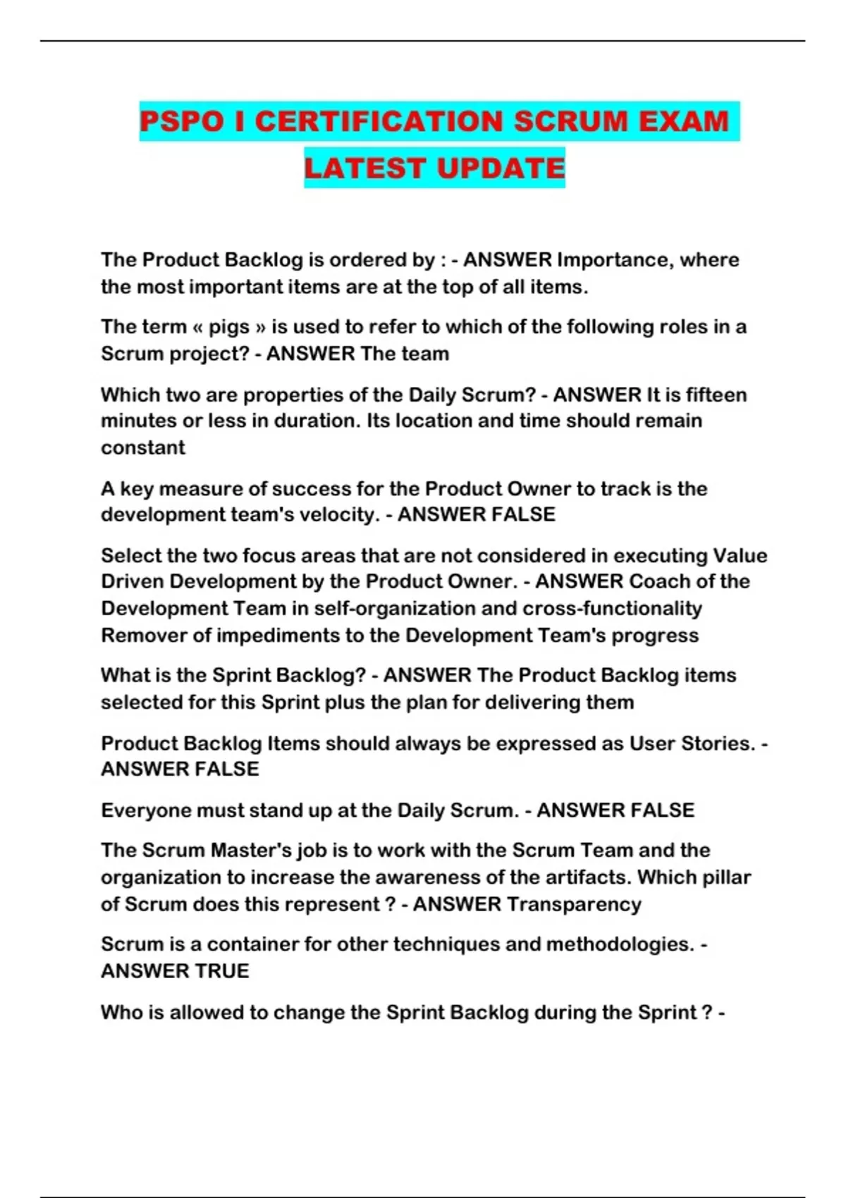 PSPO I CERTIFICATION SCRUM EXAM LATEST UPDATE...