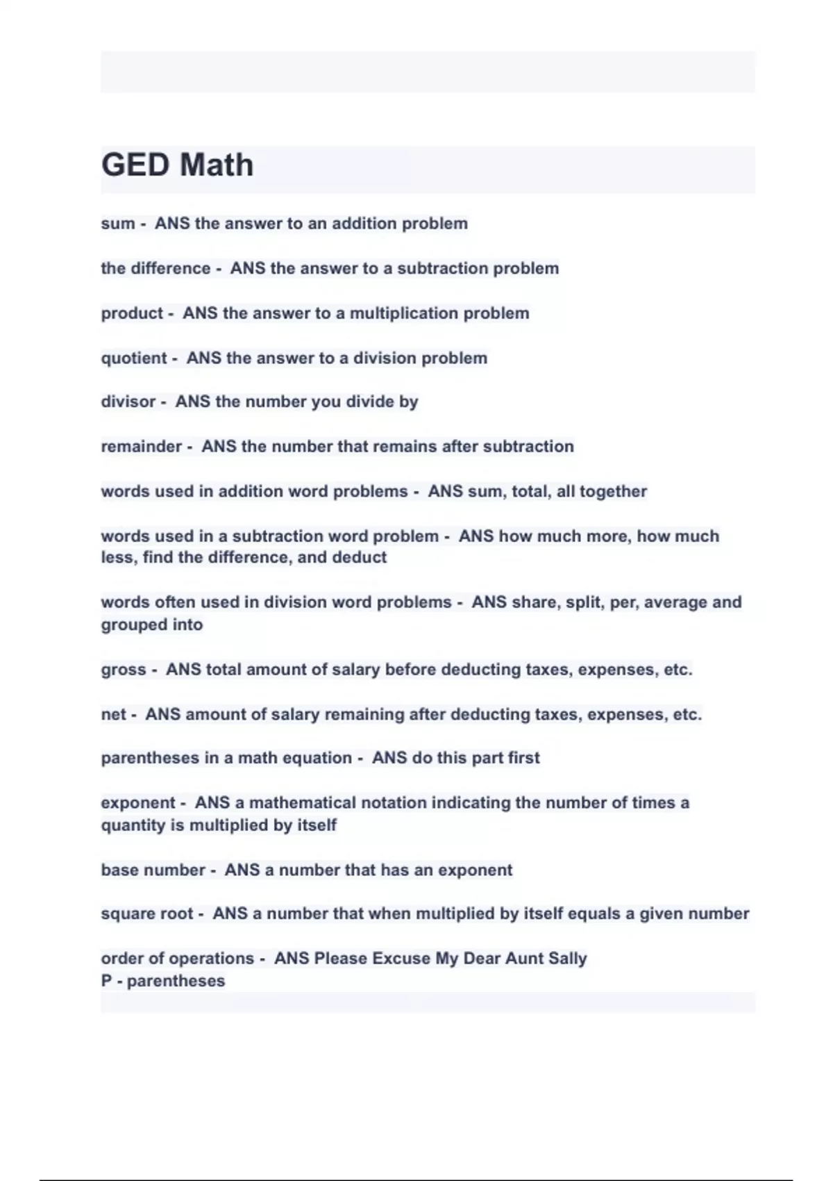 - GED Math