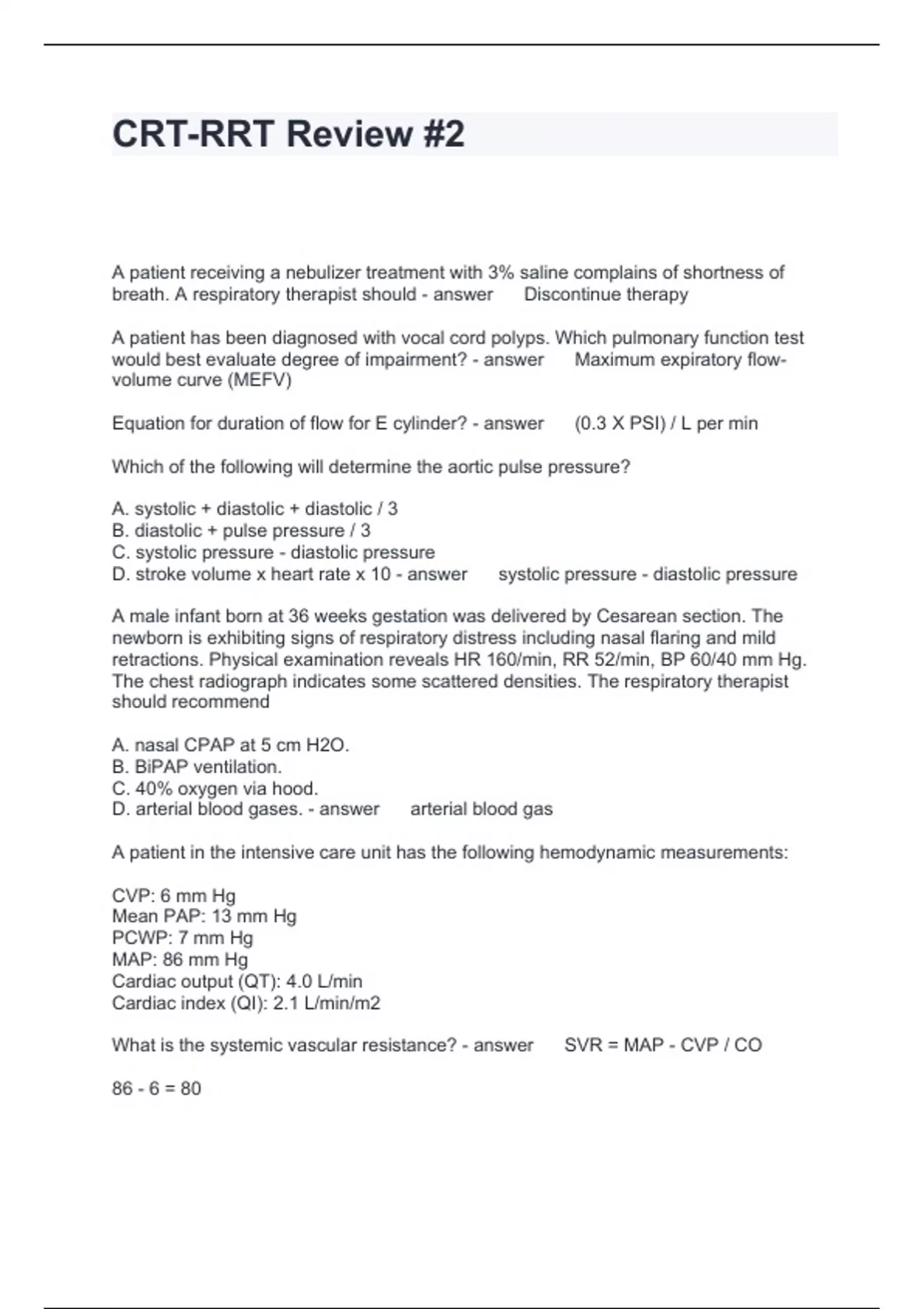 Exam of 3 pages for the course CRT-RRT at CRT-RRT (CRT-RRT Review #2)