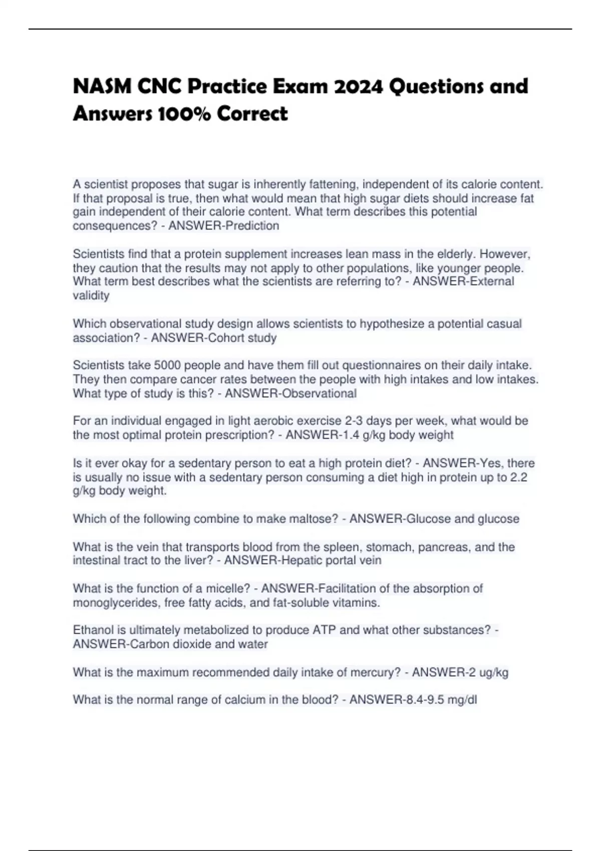 NASM CNC Practice Exam 2024 Questions and Answers 100% Correc