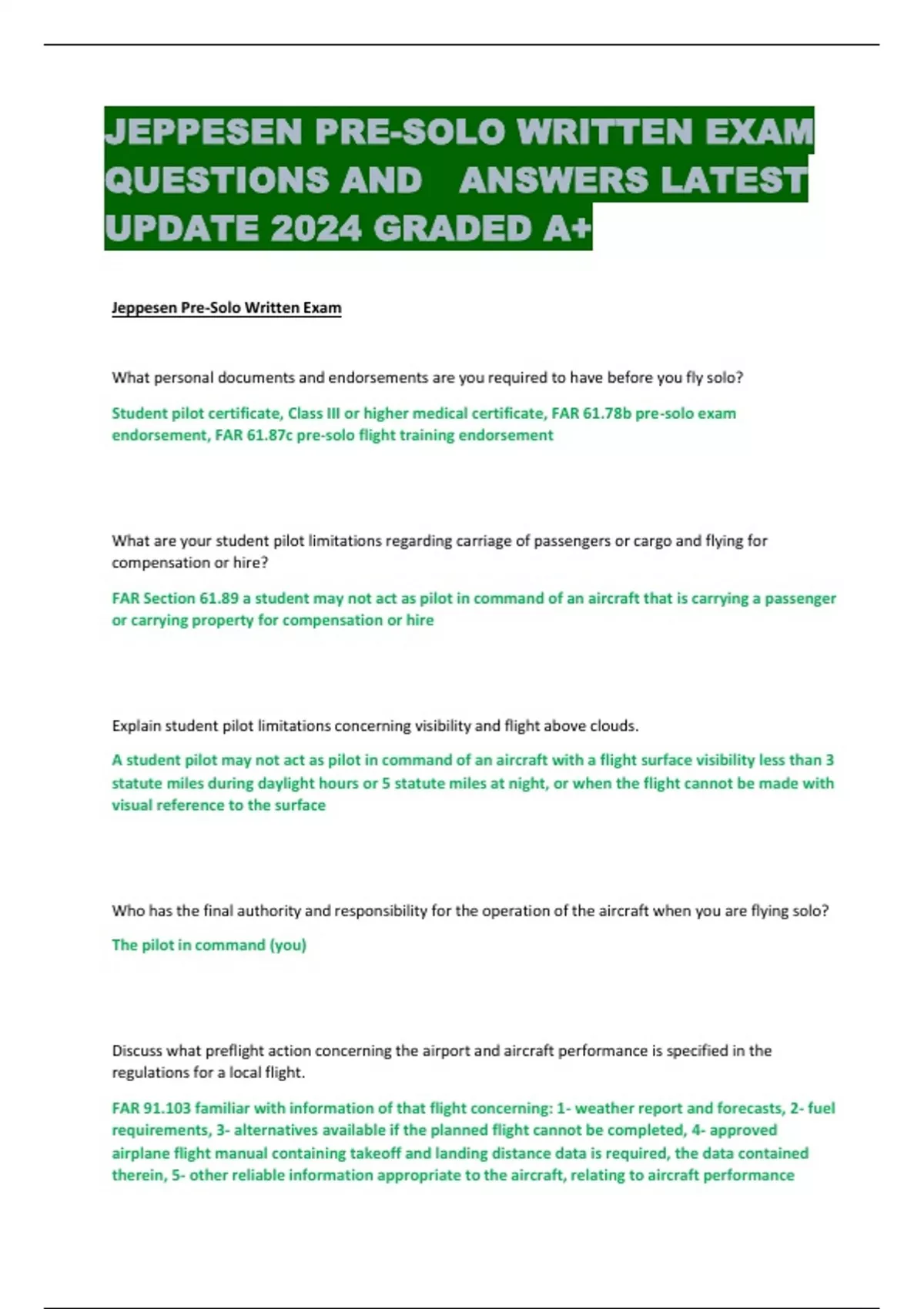 JEPPESEN PRE-SOLO WRITTEN EXAM QUESTIONS AND ANSWERS LATEST UPDATE 2024 GRADED A+