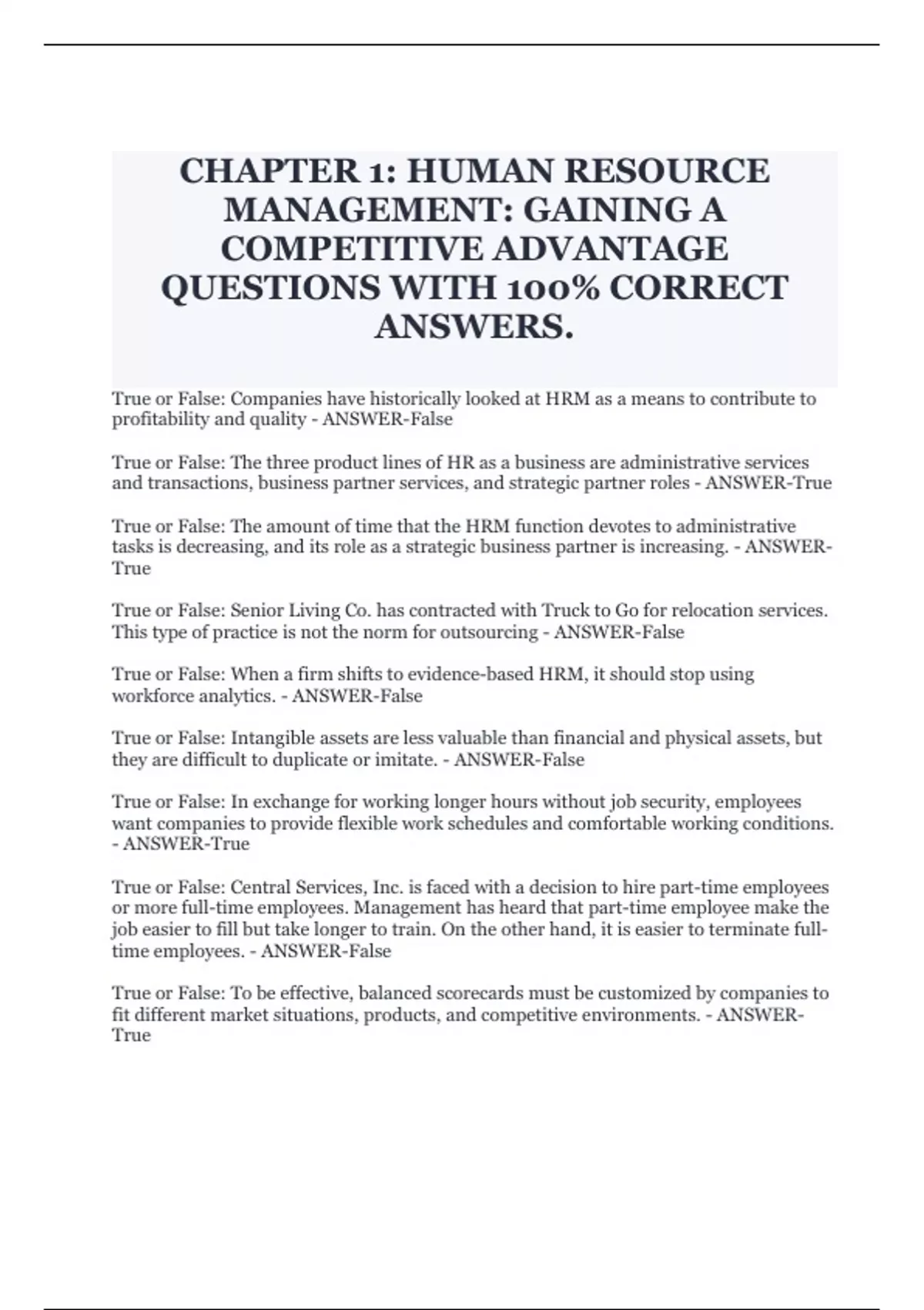 CHAPTER 1: HUMAN RESOURCE MANAGEMENT: GAINING A COMPETITIVE ADVANTAGE QUESTIONS WITH 100% CORRECT ANSWERS.