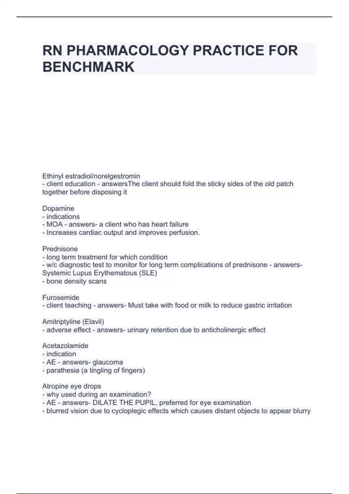 RN PHARMACOLOGY PRACTICE FOR BENCHMARK Exam